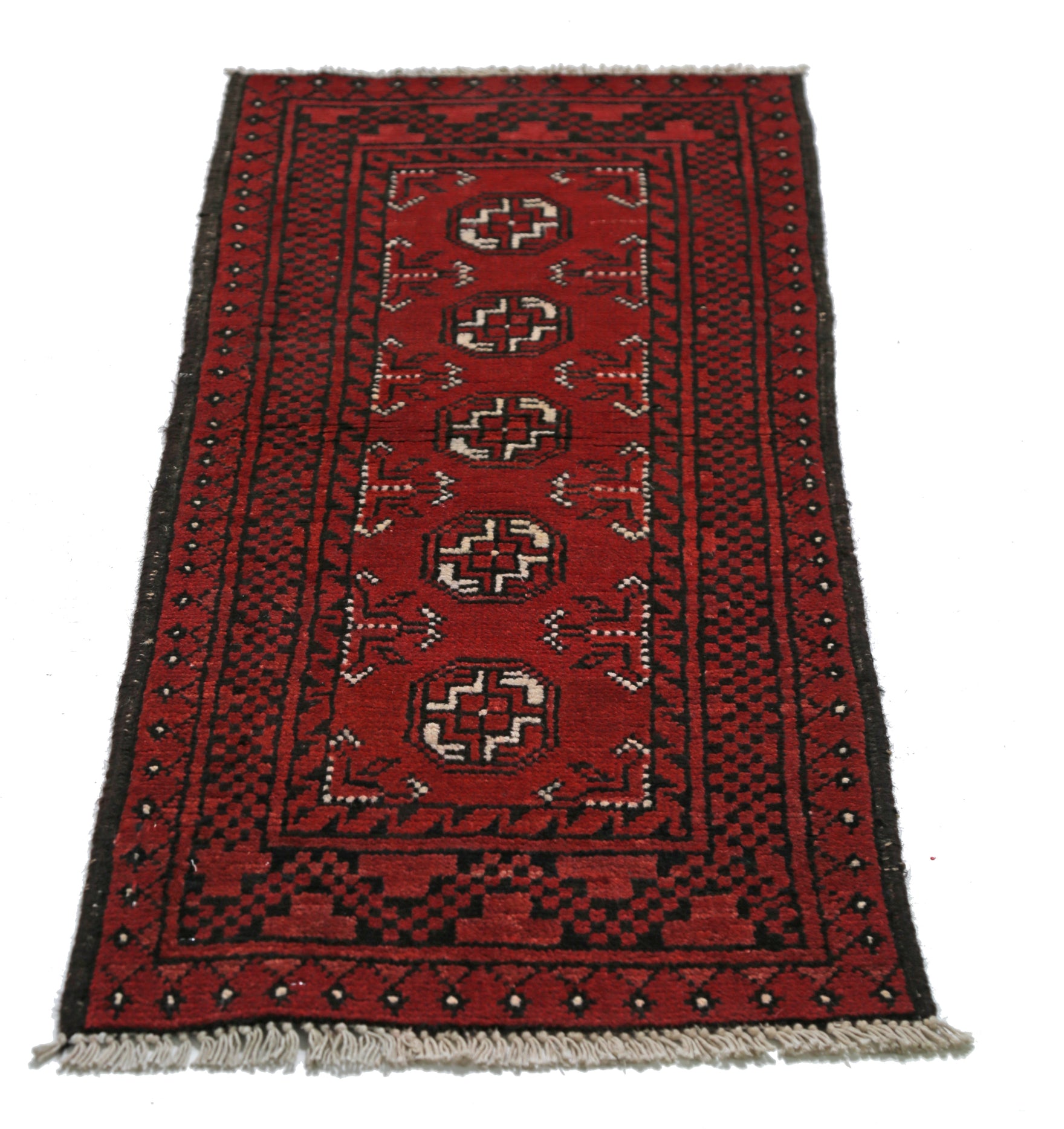 Hand-Knotted Afghan Tribal Geometric Wool Rug - 1'6" x 4'8"