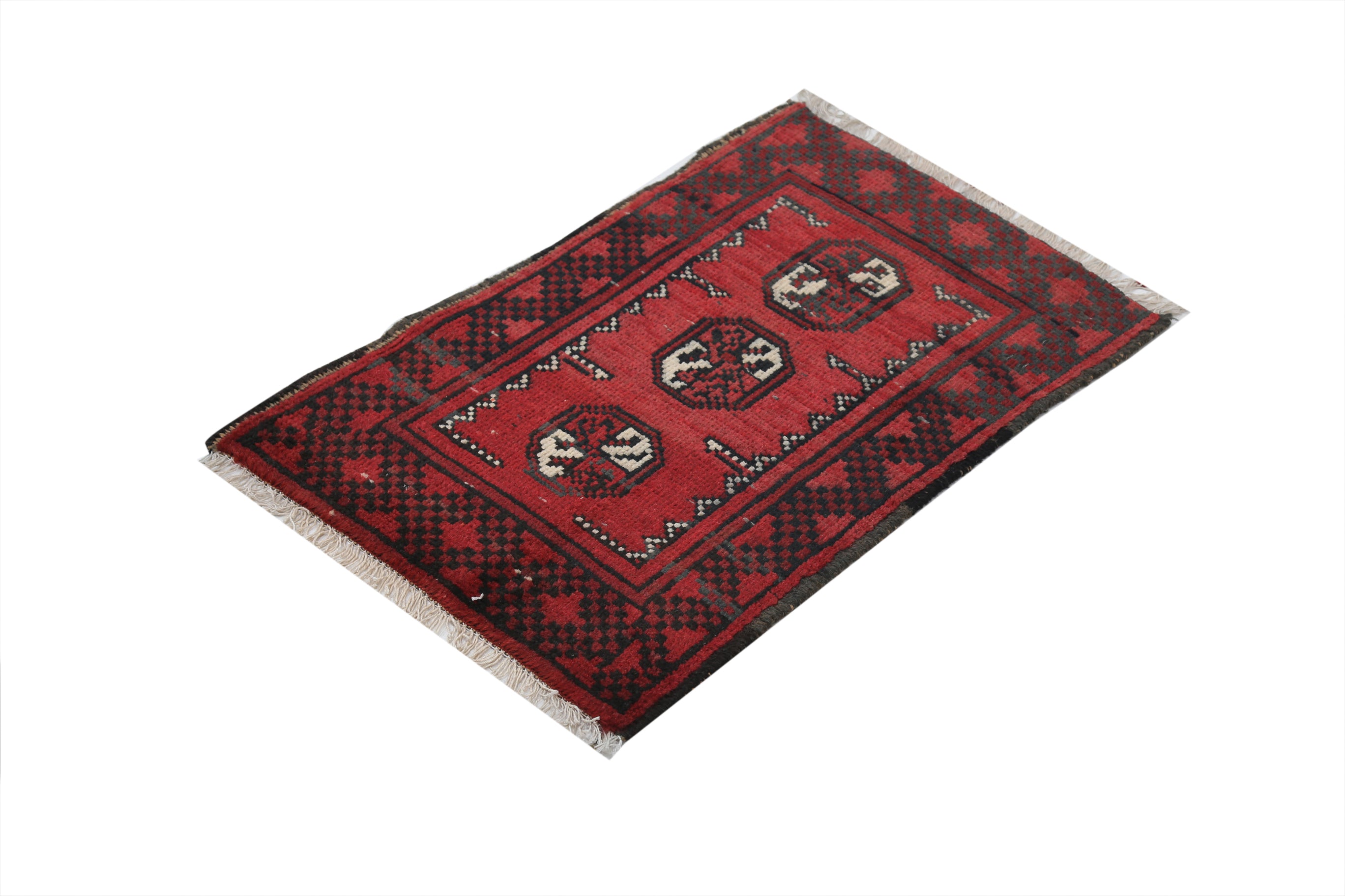 Hand-Knotted Afghan Tribal Geometric Wool Rug - 1'7" x 2'5"