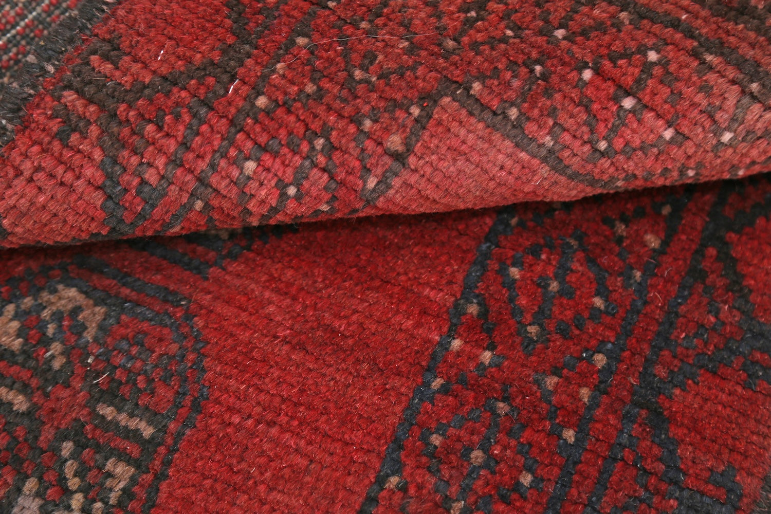 This hand-knotted Afghan wool rug features a striking tribal geometric pattern inspired by traditional designs. Rugs of this type are known for their rich, earthy tones, featuring shades of red, blue, green, gold, and yellow, adding warmth and character to any space. Crafted with a loose weave knotting technique similar to the Oushak style, it blends timeless appeal with authentic craftsmanship.