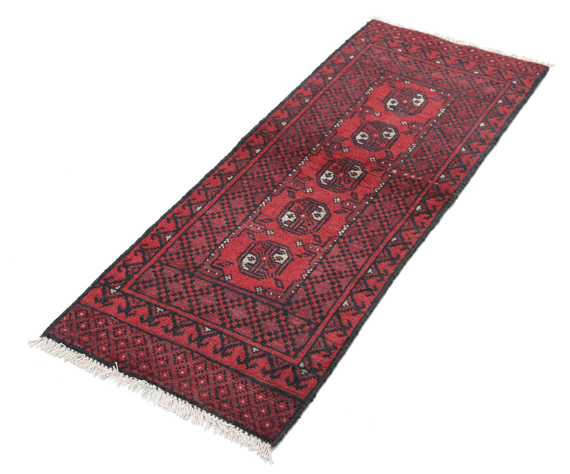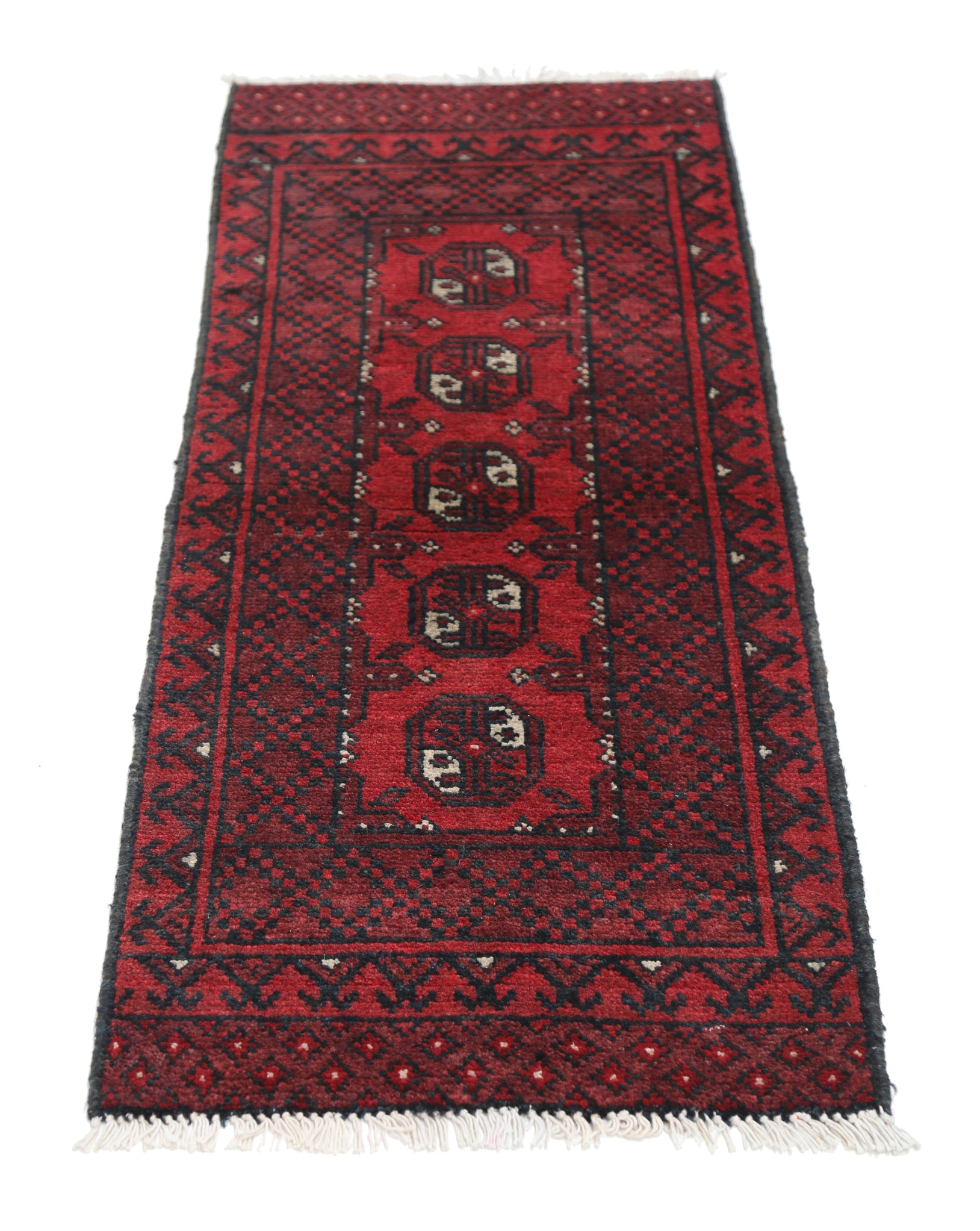 Hand-Knotted Afghan Tribal Geometric Wool Rug - 1'7" x 4'4"