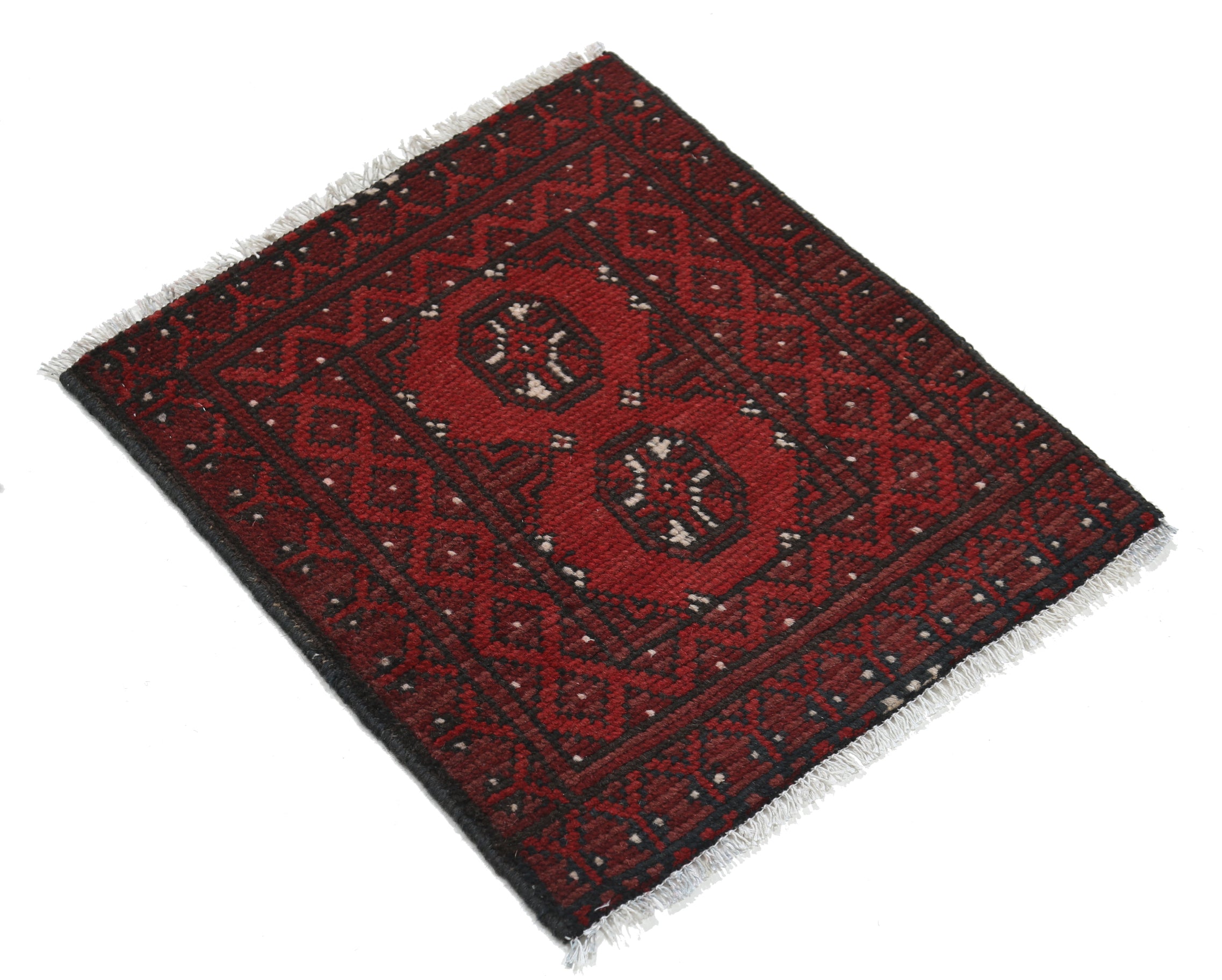Hand-Knotted Afghan Tribal Geometric Wool Rug - 1'8" x 1'11"