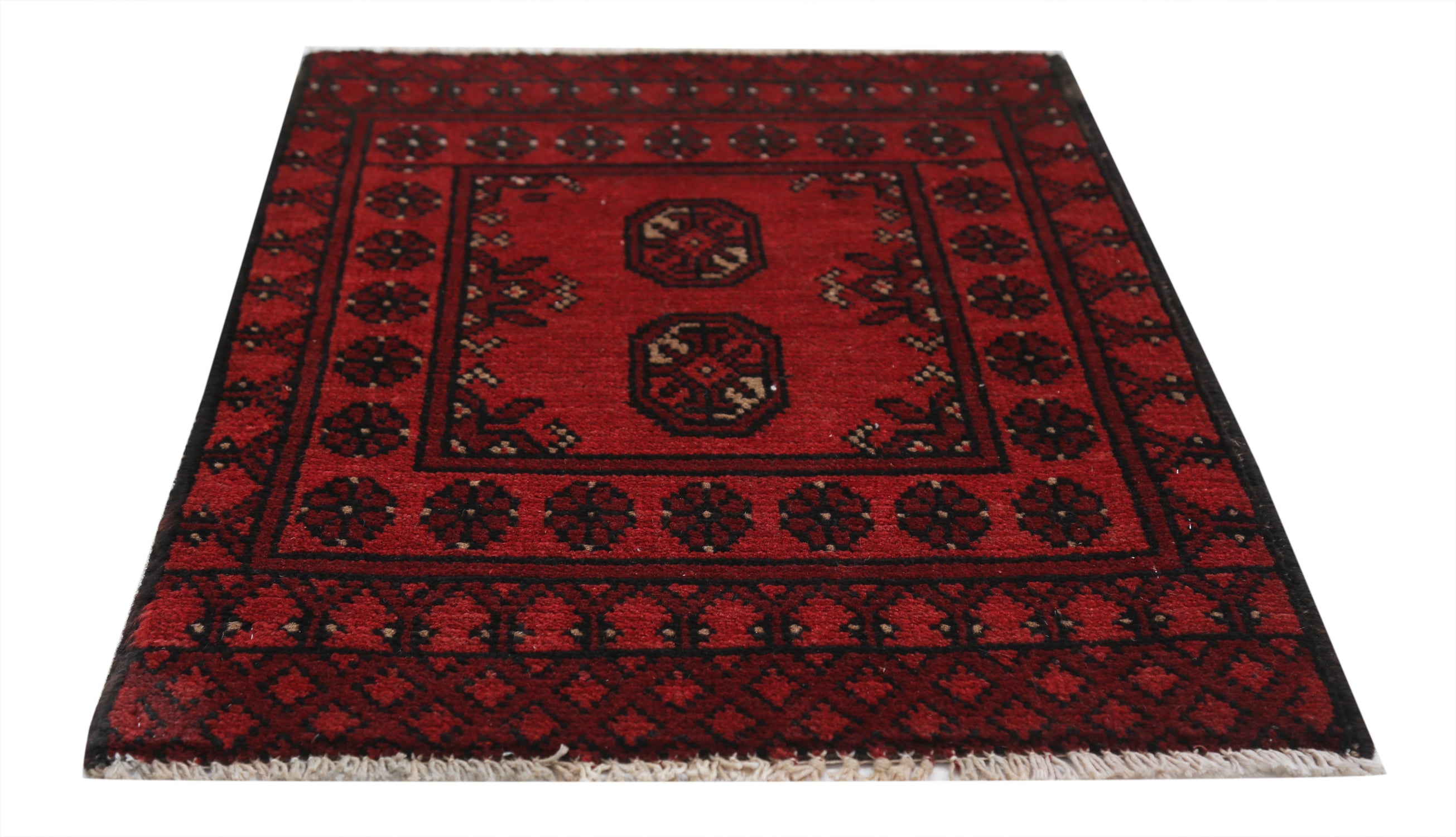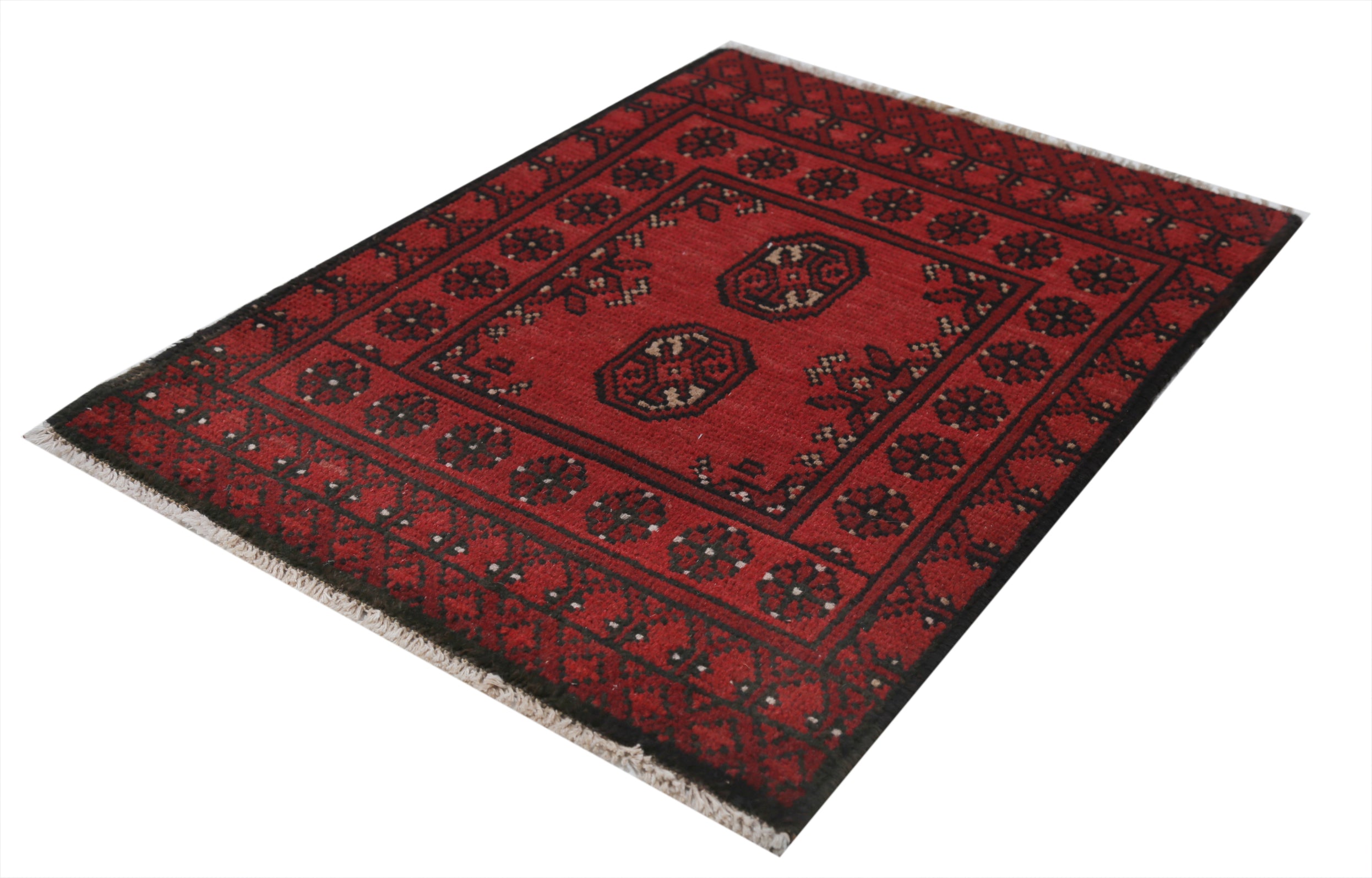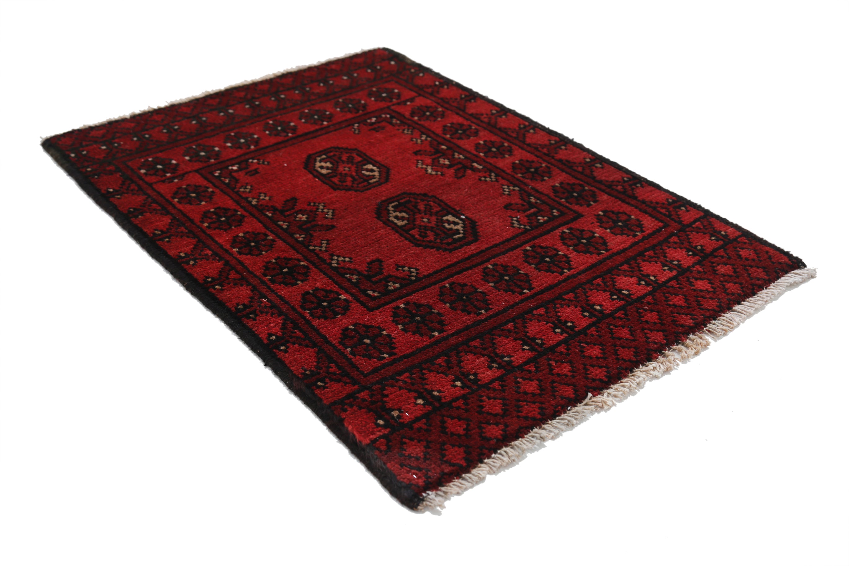 Hand-Knotted Afghan Tribal Geometric Wool Rug - 1'8" x 2'4"