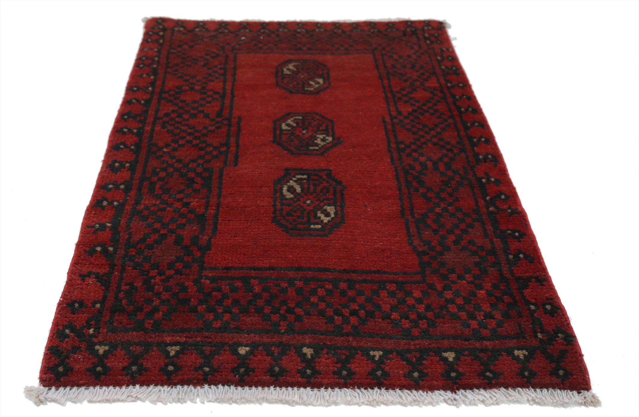 Hand-Knotted Afghan Tribal Geometric Wool Rug - 1'8" x 2'9"