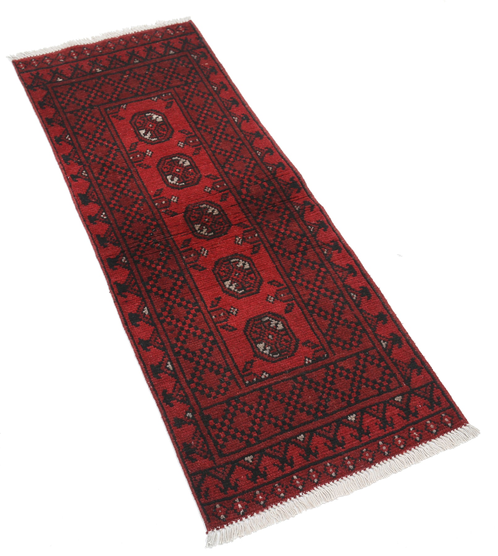 Hand-Knotted Afghan Tribal Geometric Wool Rug - 1'8" x 4'4"