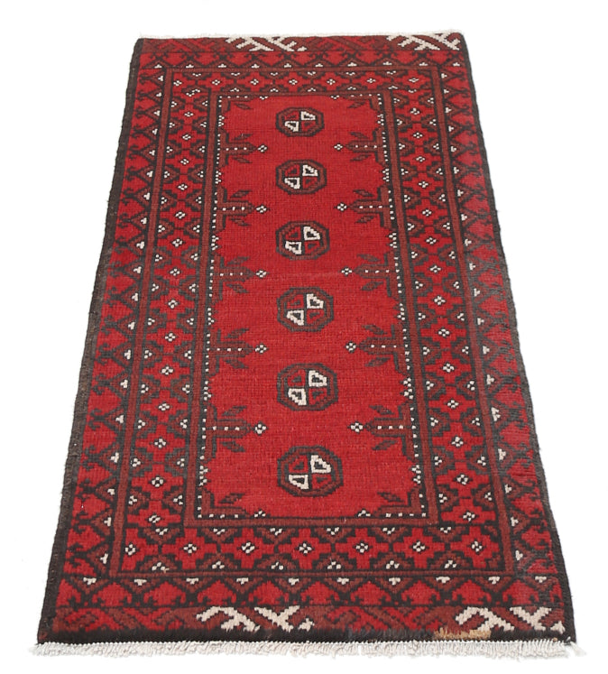 Hand-Knotted Afghan Tribal Geometric Wool Rug - 1'9" x 4'3"