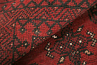 This hand-knotted Afghan wool rug features a striking tribal geometric pattern inspired by traditional designs. Rugs of this type are known for their rich, earthy tones, featuring shades of red, blue, green, gold, and yellow, adding warmth and character to any space. Crafted with a loose weave knotting technique similar to the Oushak style, it blends timeless appeal with authentic craftsmanship.