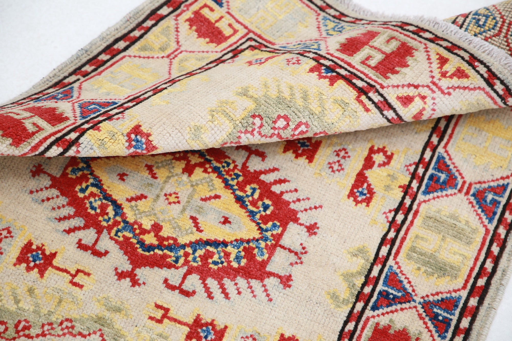 This artisan-crafted Afghan wool rug features a striking geometric tribal pattern, renowned for its cultural heritage and timeless appeal. Expertly hand-knotted by skilled weavers, it offers superior durability, making it perfect for high-traffic areas. Its intricate design and premium wool blend traditional craftsmanship with modern elegance, adding warmth and character to any space.