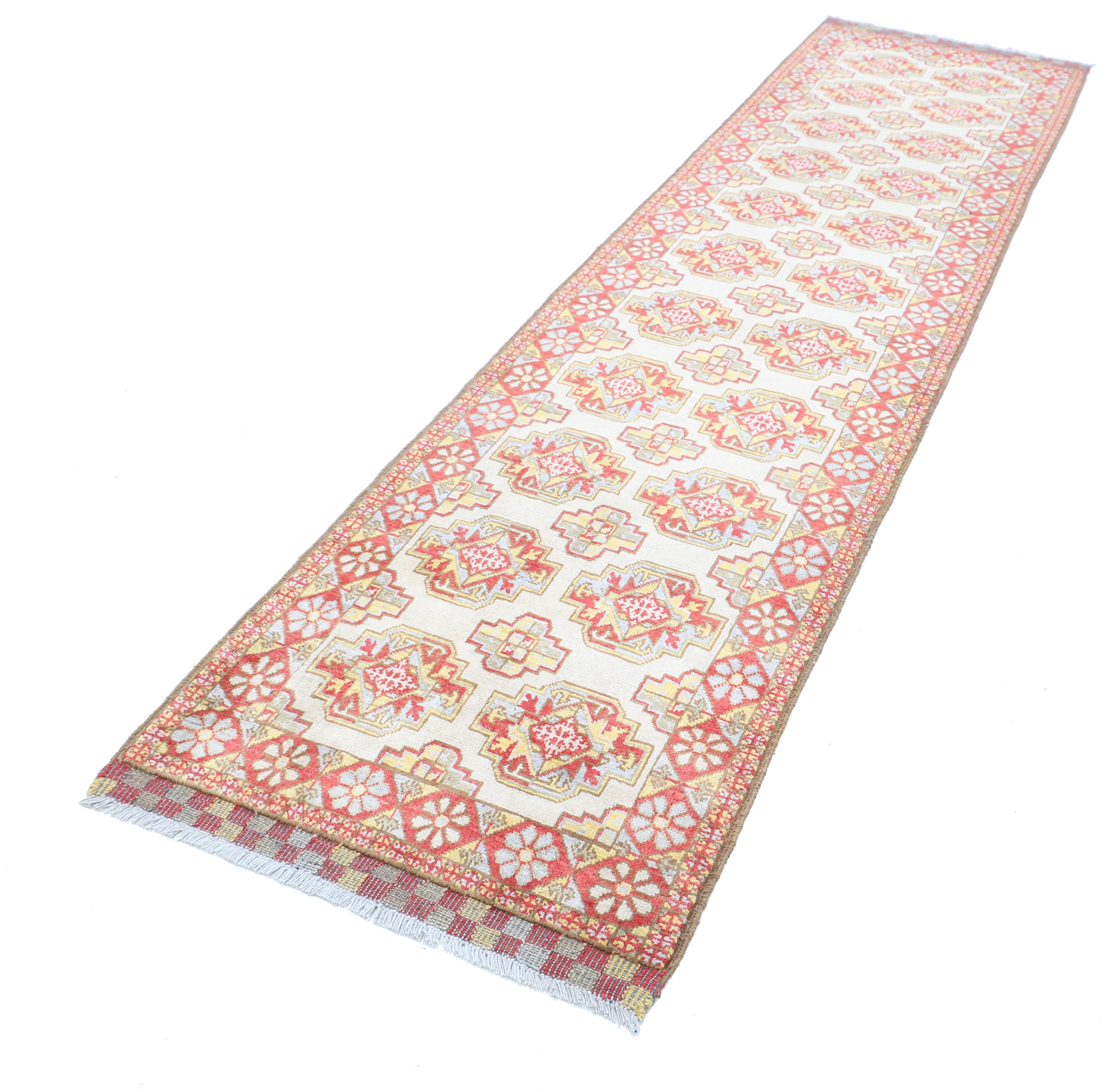 Hand-Knotted Distressed Vintage Wool Rug - 2'7" x 9'11"