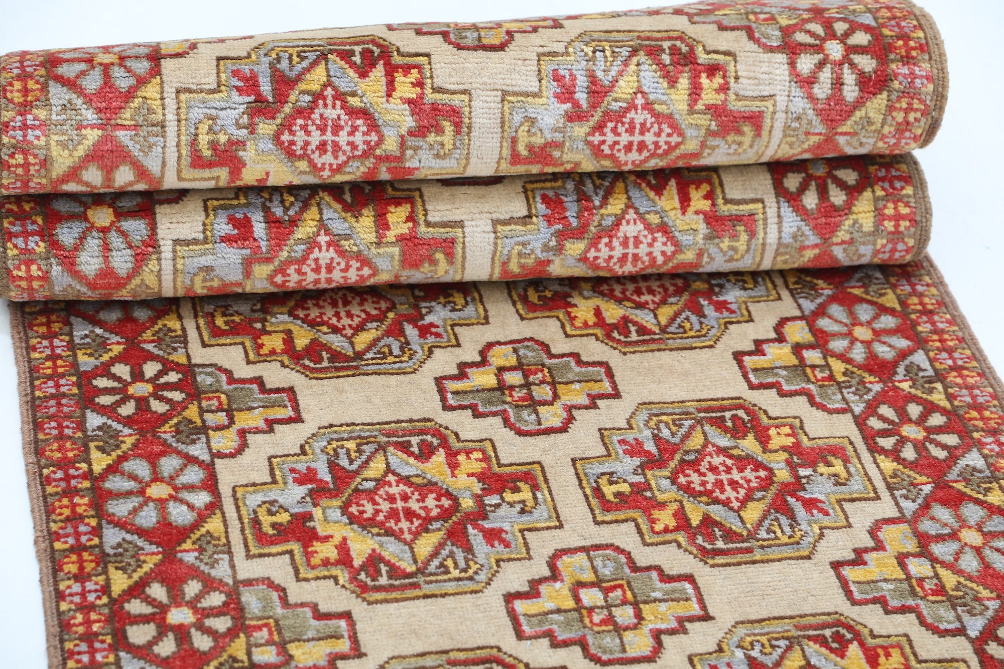 This artisan-crafted Afghan wool rug features a striking geometric tribal pattern, renowned for its cultural heritage and timeless appeal. Expertly hand-knotted by skilled weavers, it offers superior durability, making it perfect for high-traffic areas. Its intricate design and premium wool blend traditional craftsmanship with modern elegance, adding warmth and character to any space.