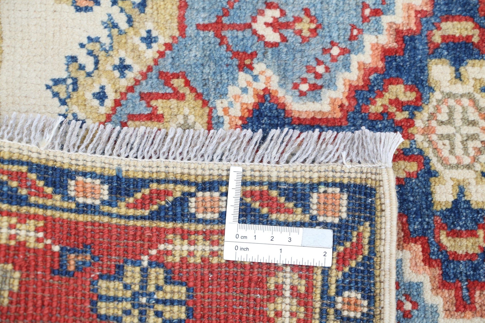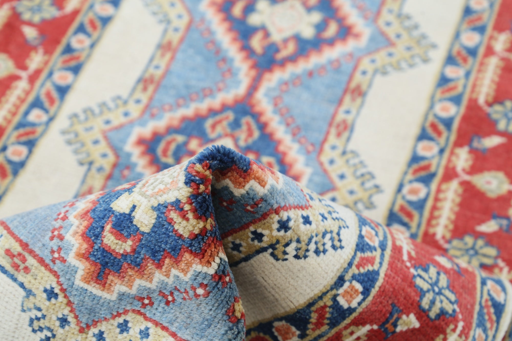 This artisan-crafted Afghan wool rug features a striking geometric tribal pattern, renowned for its cultural heritage and timeless appeal. Expertly hand-knotted by skilled weavers, it offers superior durability, making it perfect for high-traffic areas. Its intricate design and premium wool blend traditional craftsmanship with modern elegance, adding warmth and character to any space.