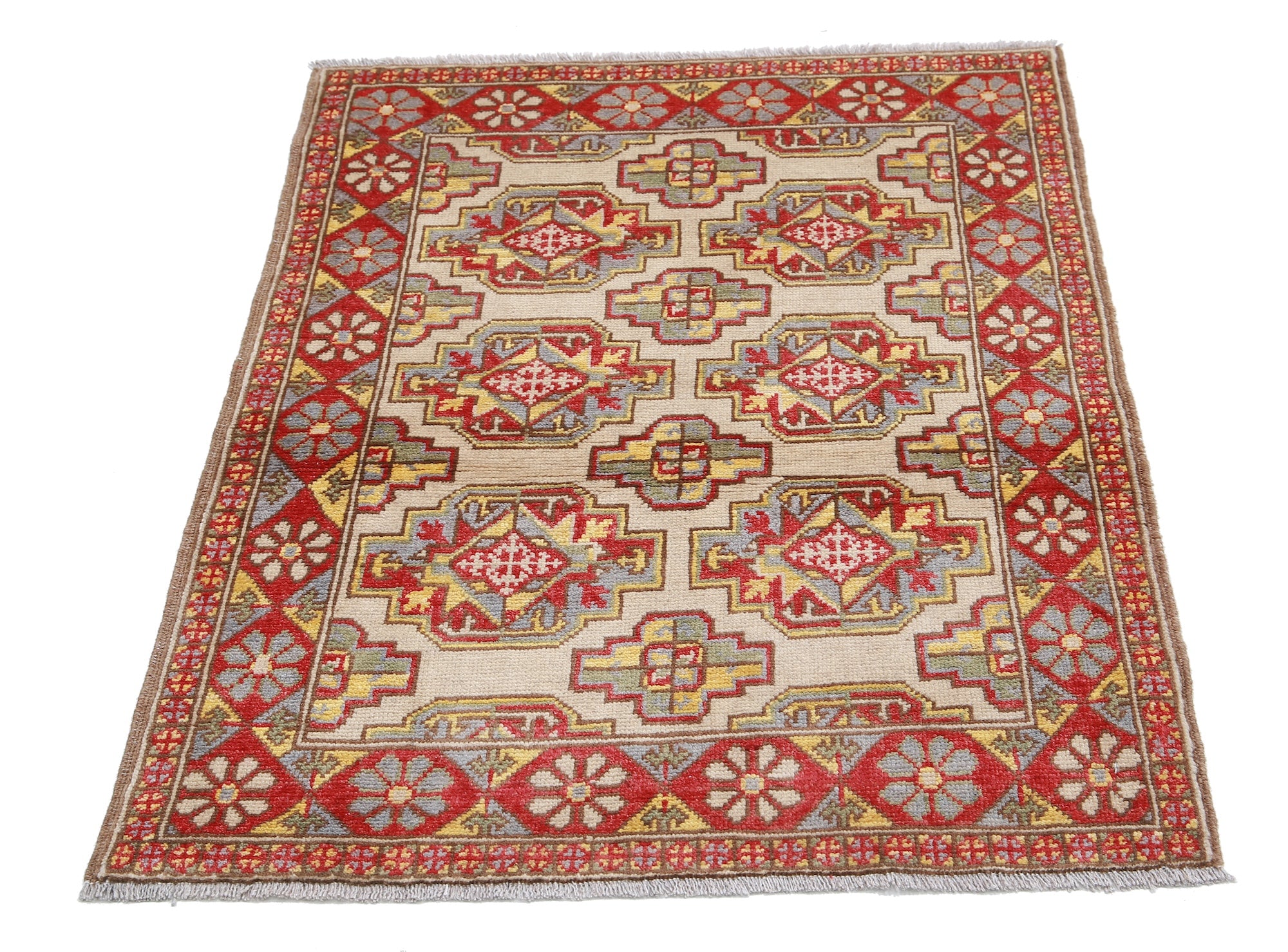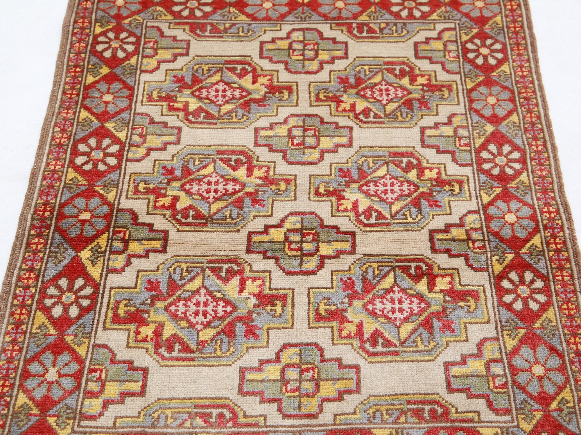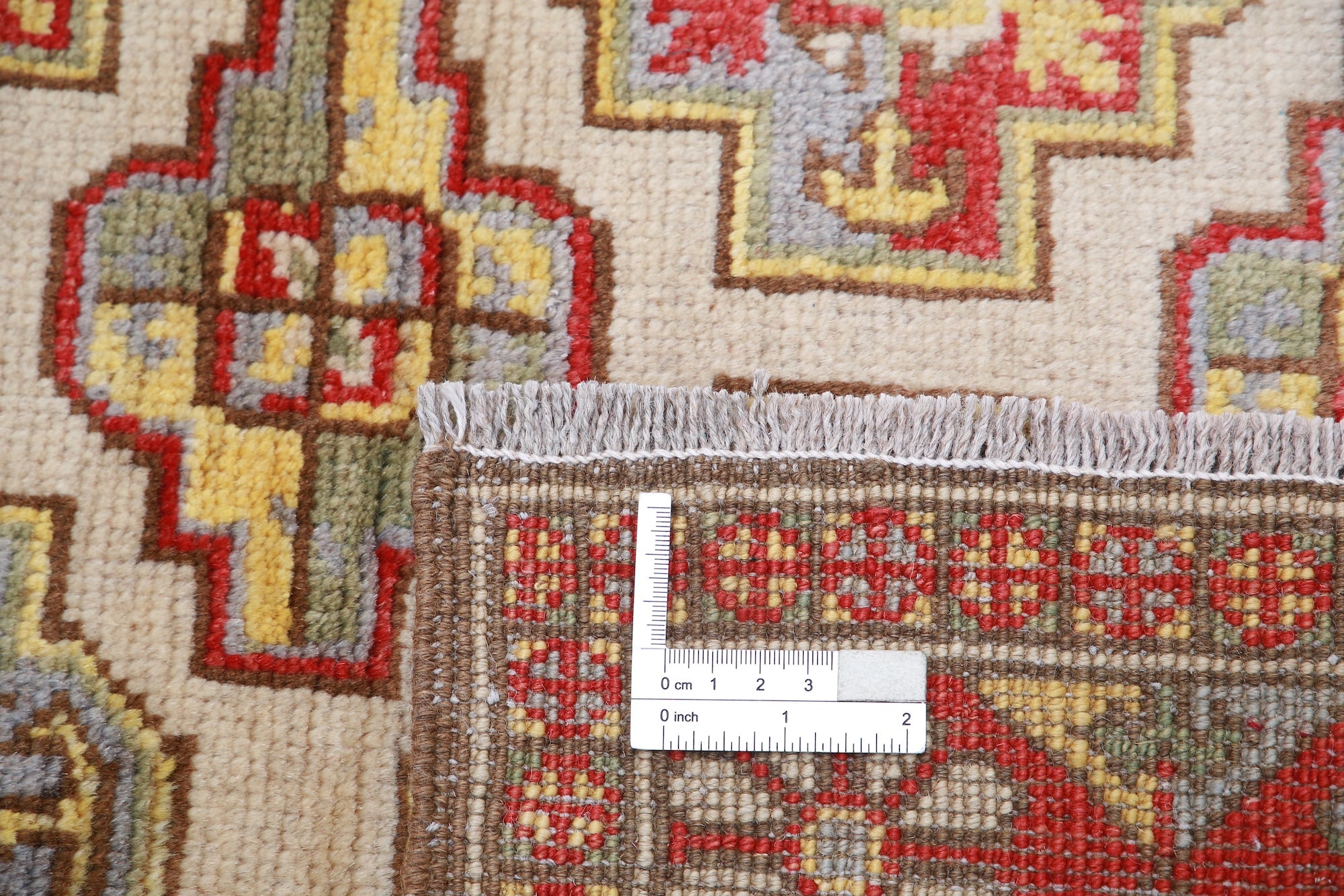 This artisan-crafted Afghan wool rug features a striking geometric tribal pattern, renowned for its cultural heritage and timeless appeal. Expertly hand-knotted by skilled weavers, it offers superior durability, making it perfect for high-traffic areas. Its intricate design and premium wool blend traditional craftsmanship with modern elegance, adding warmth and character to any space.