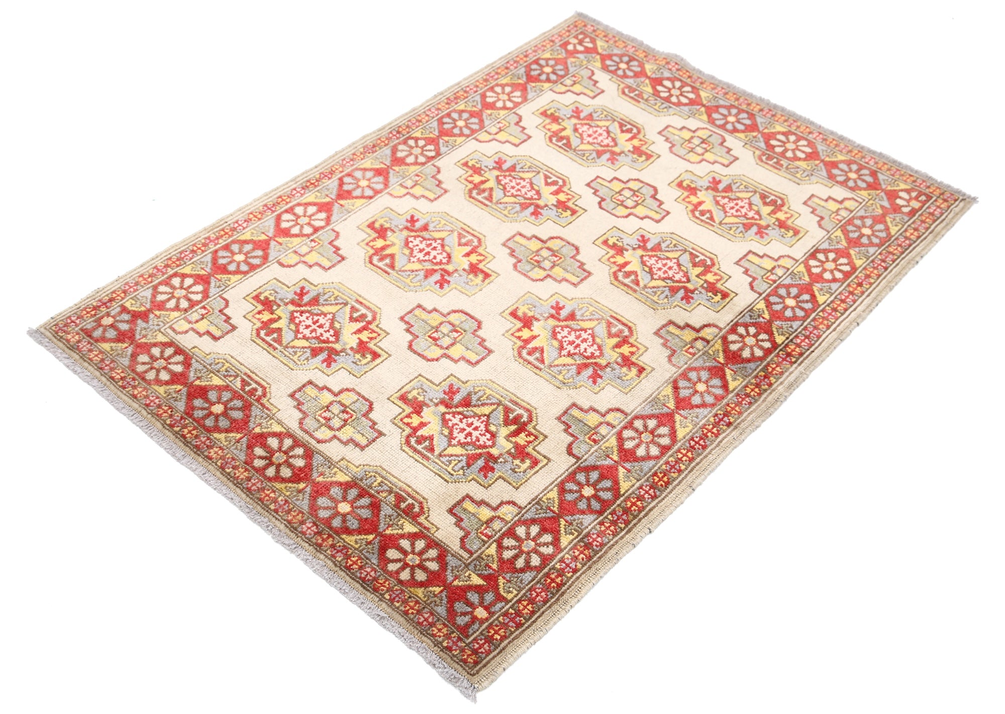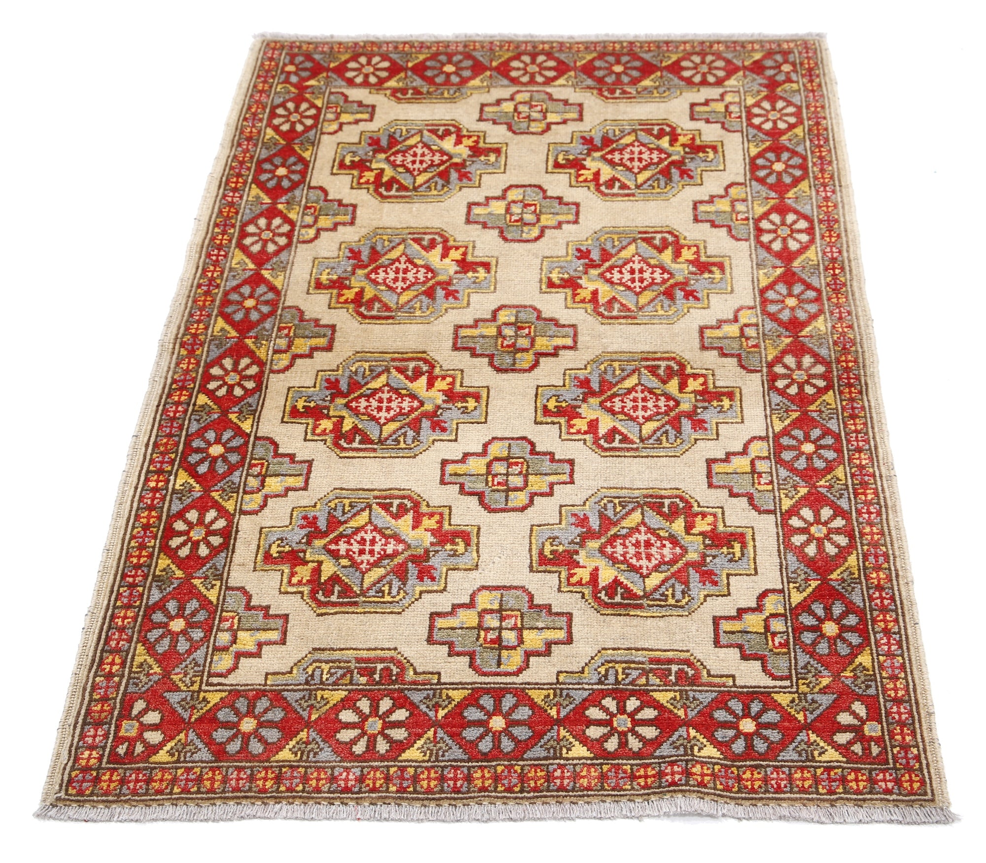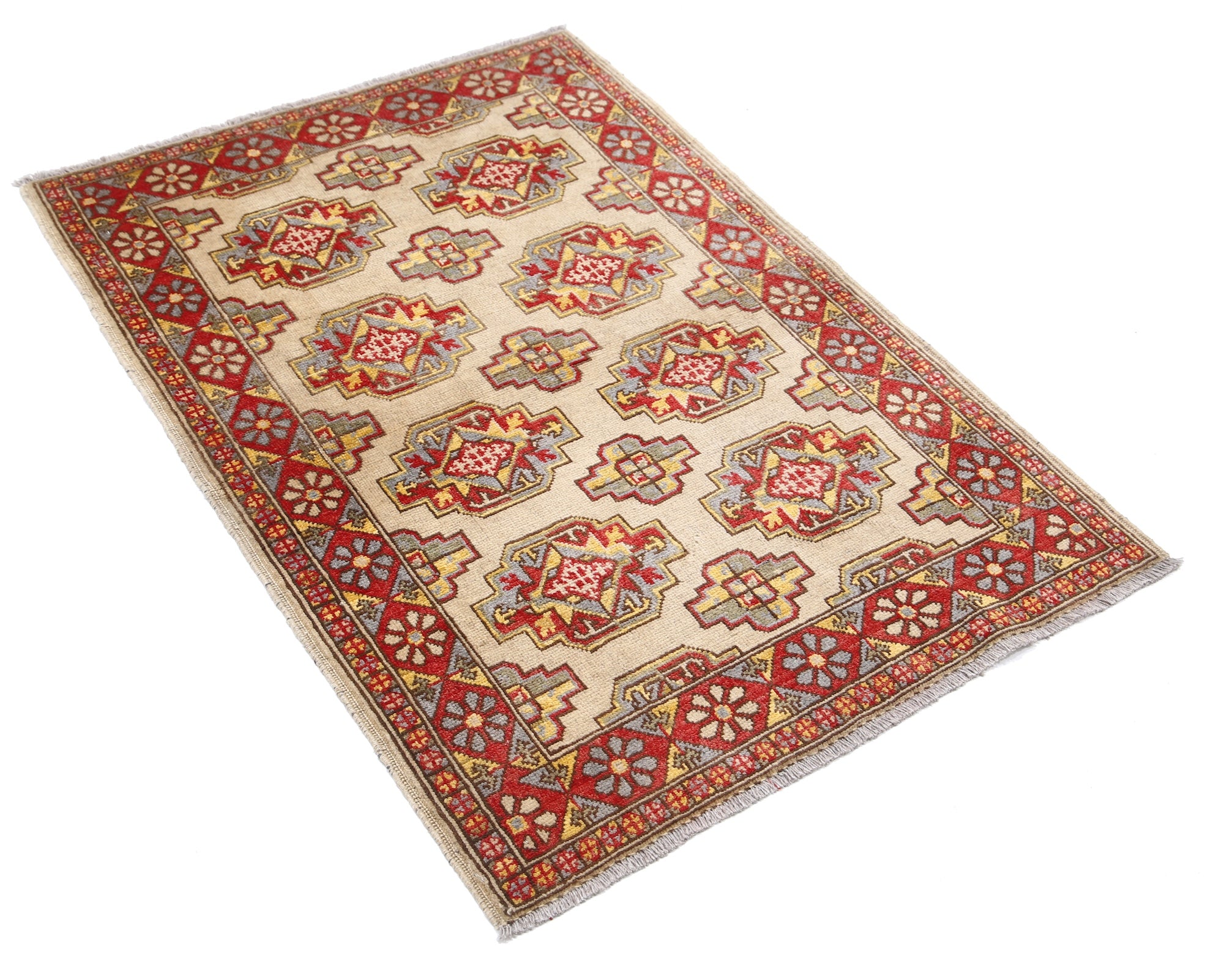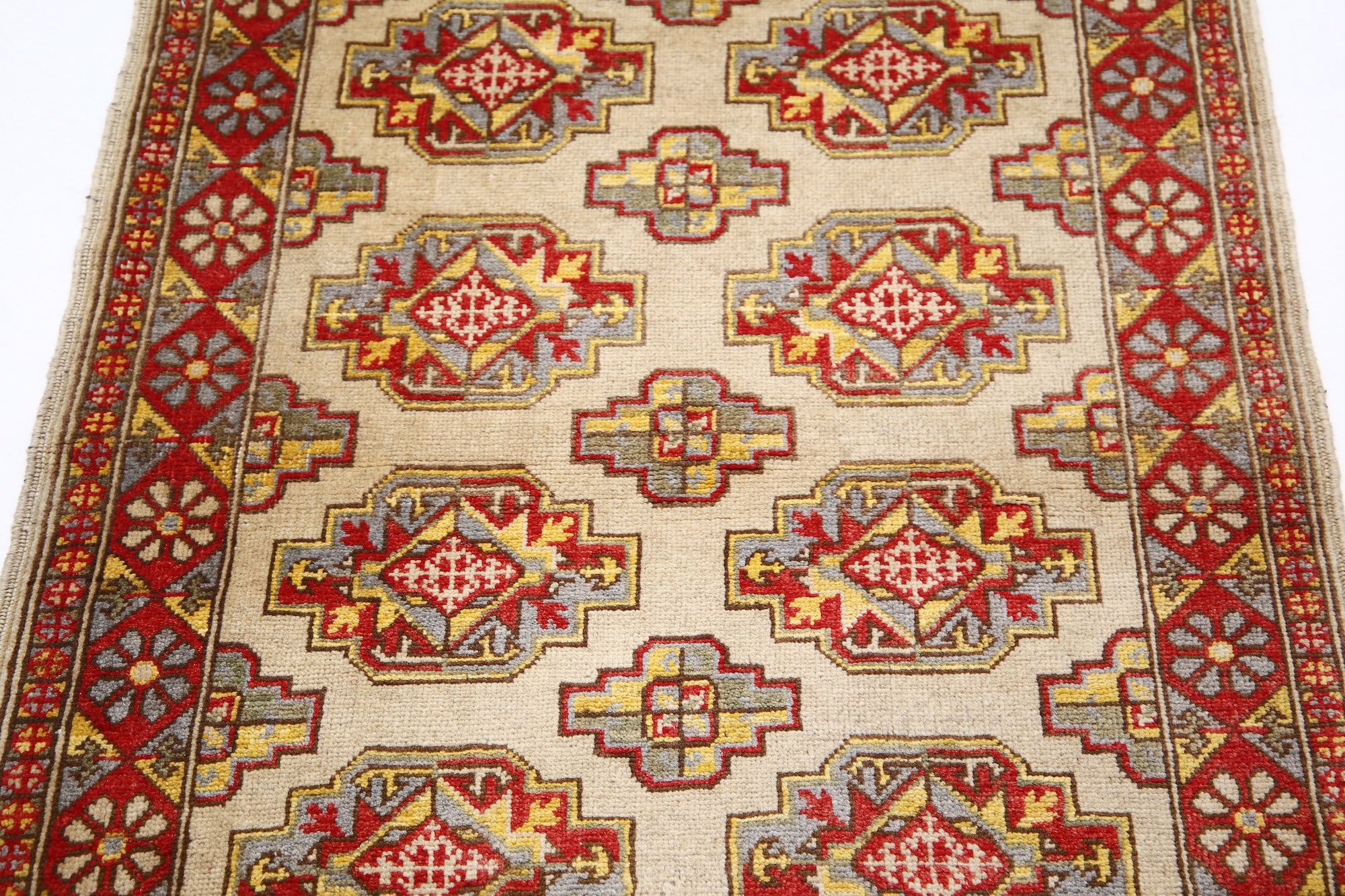 This artisan-crafted Afghan wool rug features a striking geometric tribal pattern, renowned for its cultural heritage and timeless appeal. Expertly hand-knotted by skilled weavers, it offers superior durability, making it perfect for high-traffic areas. Its intricate design and premium wool blend traditional craftsmanship with modern elegance, adding warmth and character to any space.