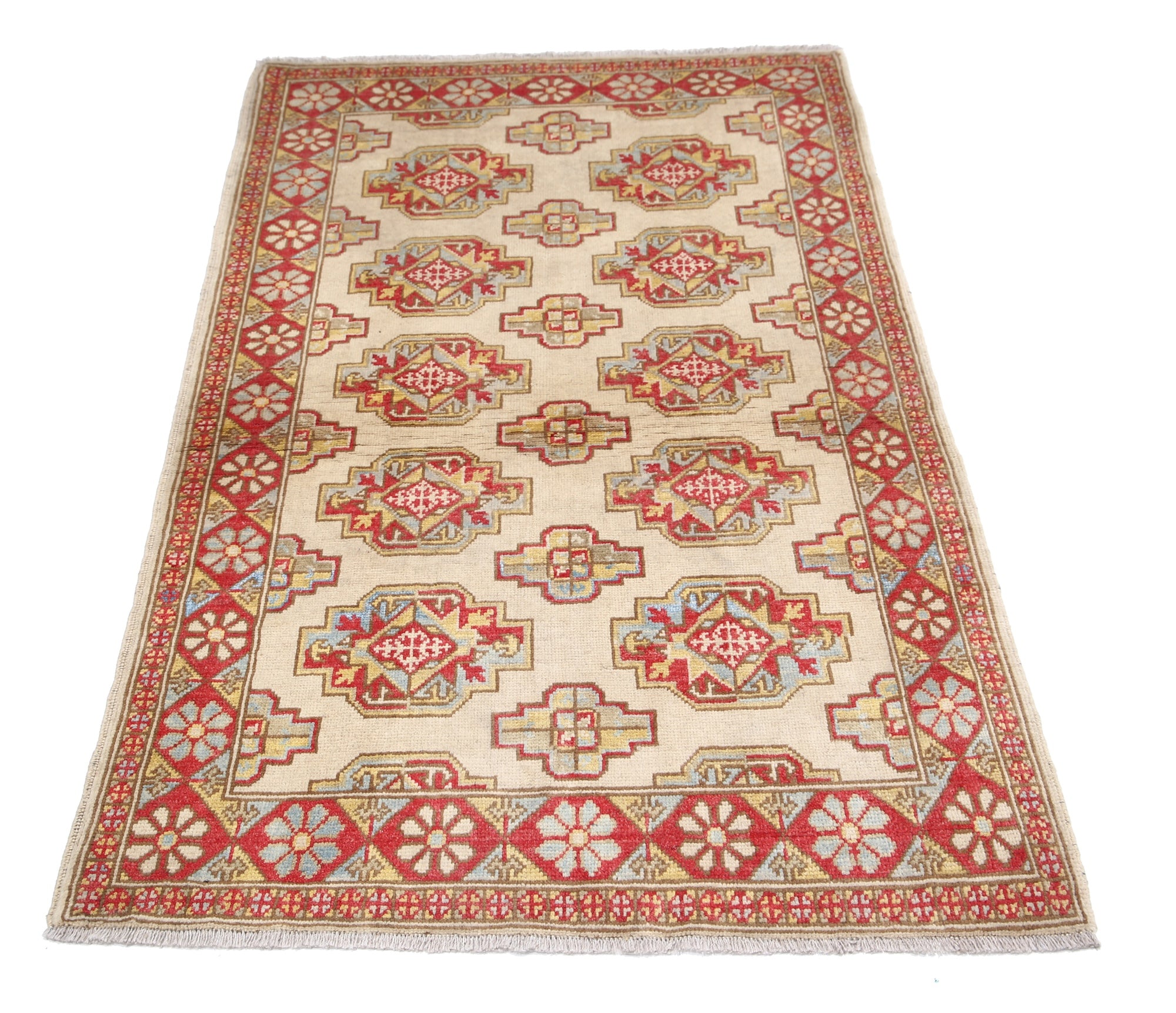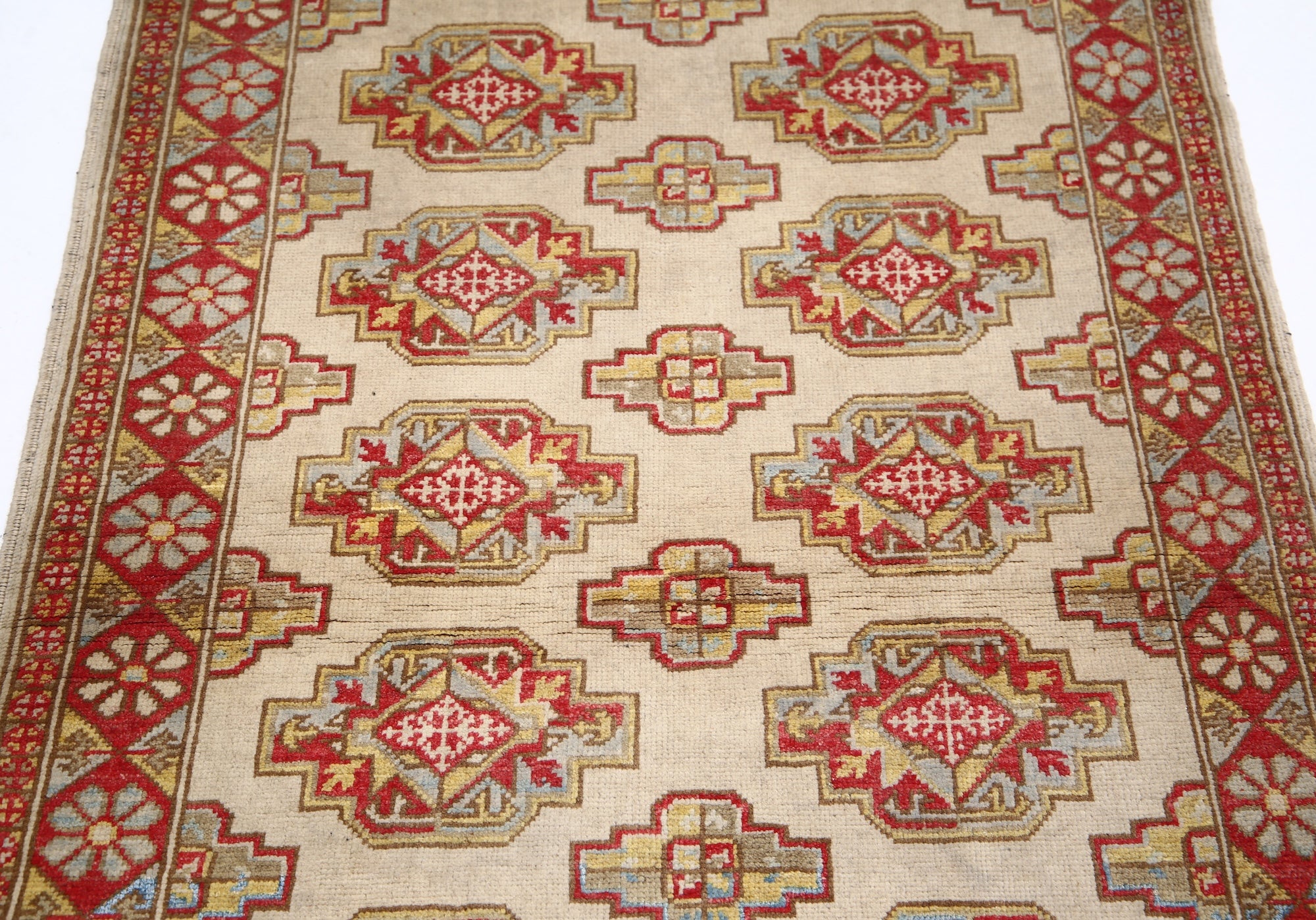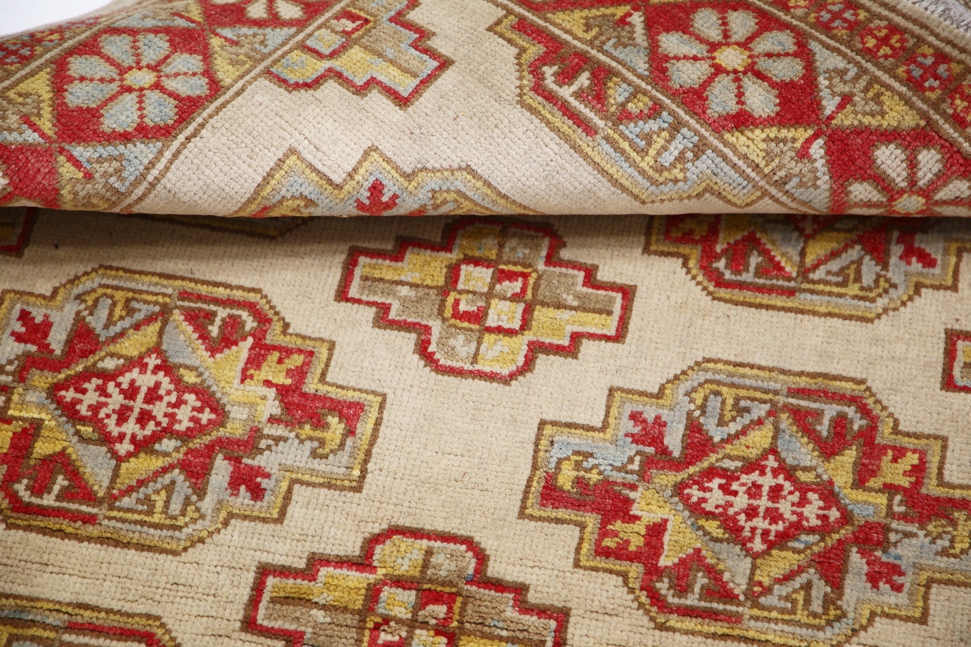 This artisan-crafted Afghan wool rug features a striking geometric tribal pattern, renowned for its cultural heritage and timeless appeal. Expertly hand-knotted by skilled weavers, it offers superior durability, making it perfect for high-traffic areas. Its intricate design and premium wool blend traditional craftsmanship with modern elegance, adding warmth and character to any space.
