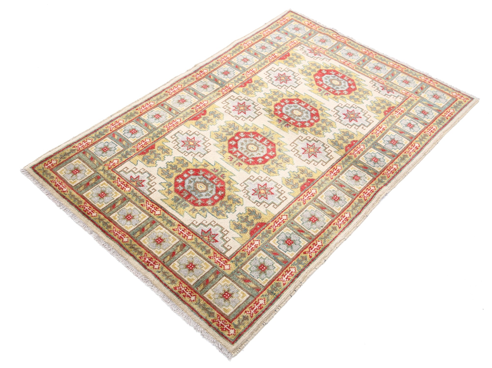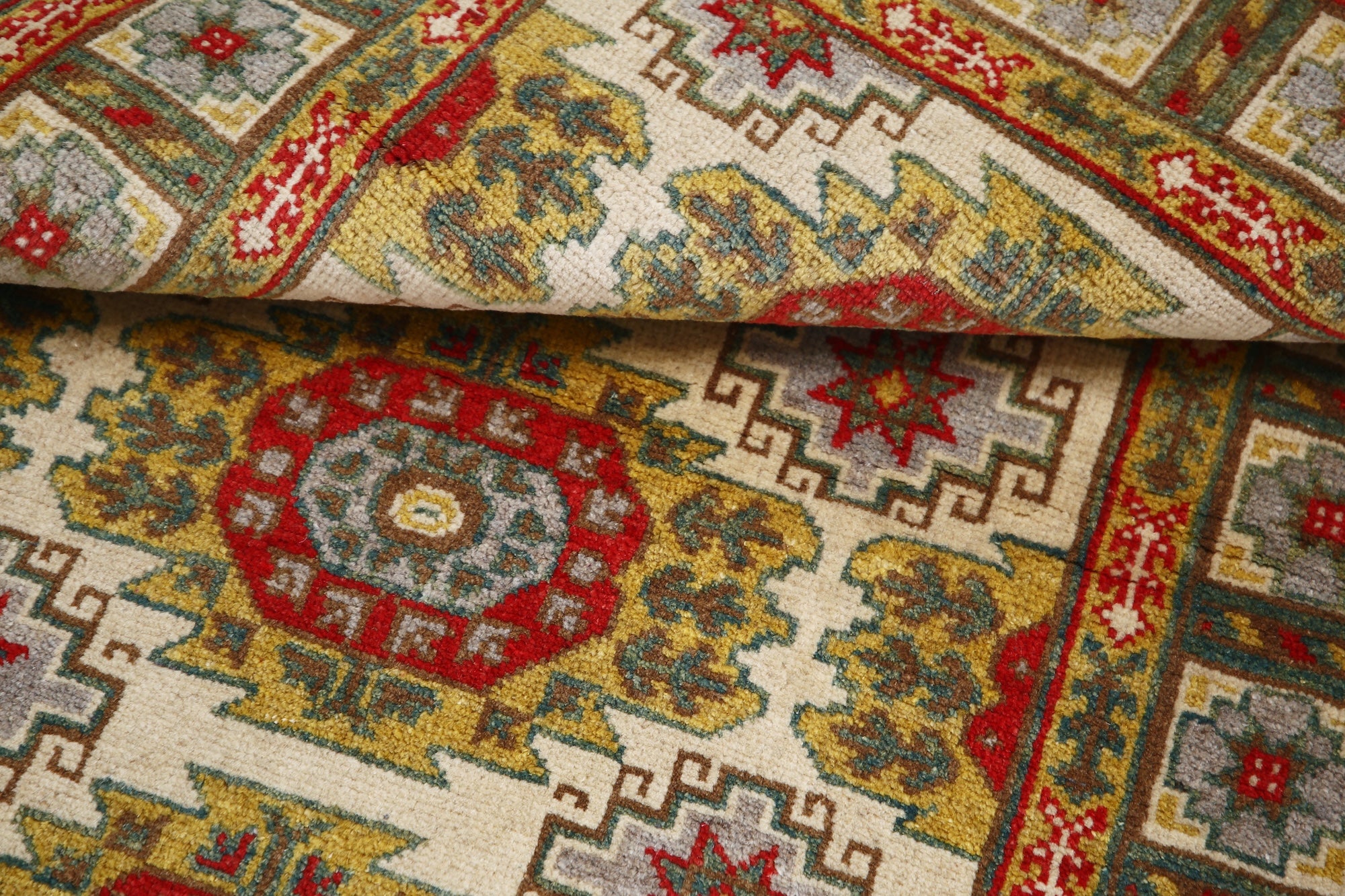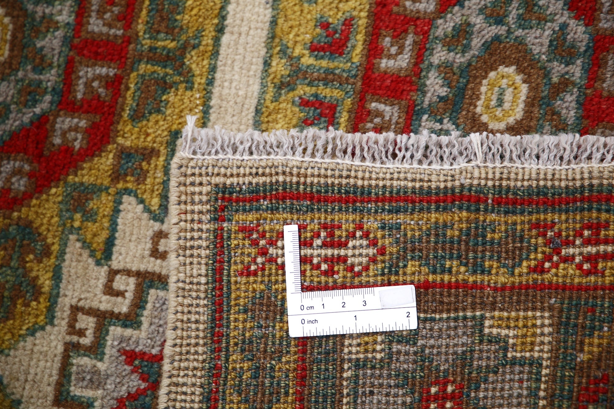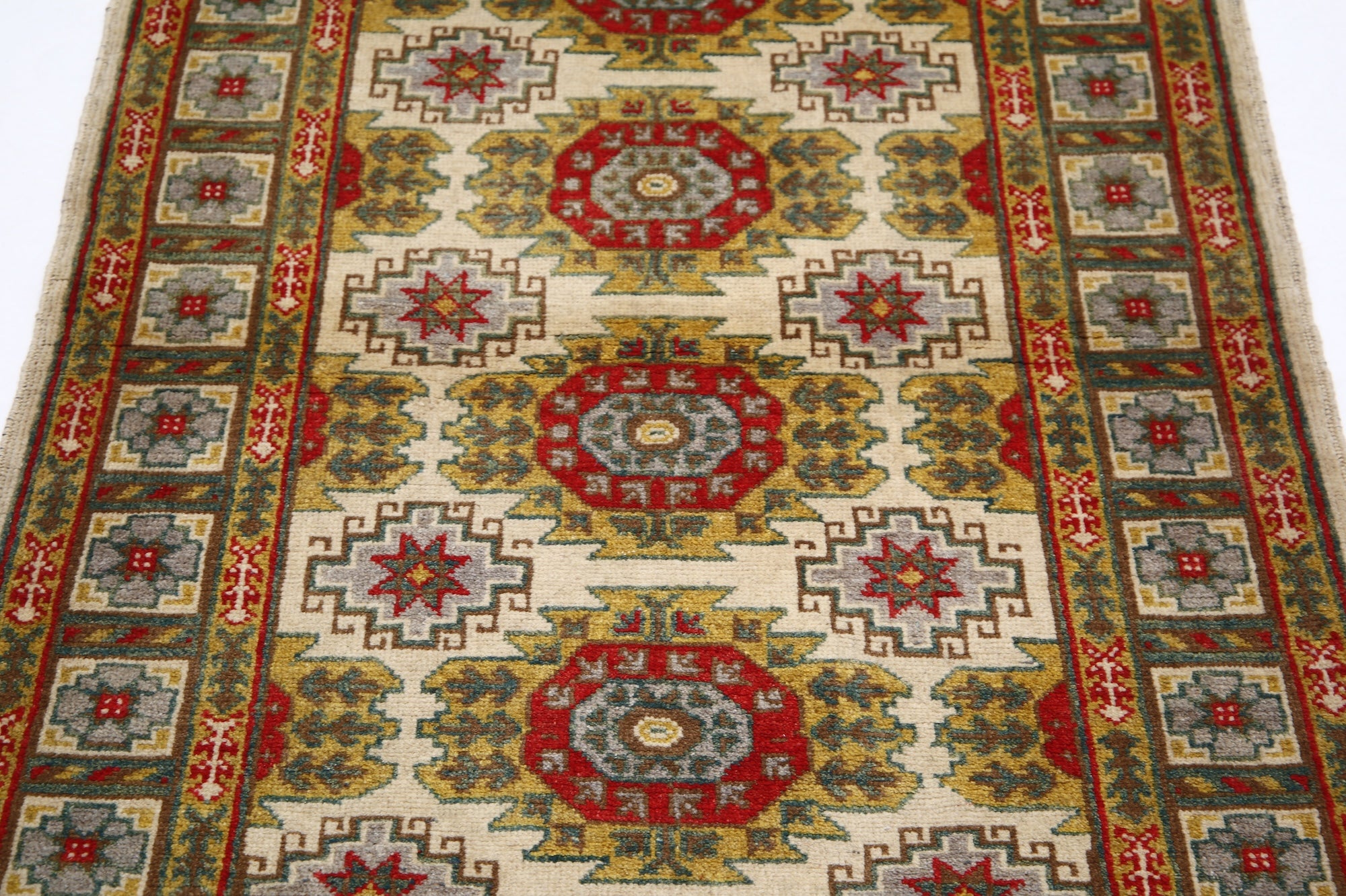 This artisan-crafted Afghan wool rug features a striking geometric tribal pattern, renowned for its cultural heritage and timeless appeal. Expertly hand-knotted by skilled weavers, it offers superior durability, making it perfect for high-traffic areas. Its intricate design and premium wool blend traditional craftsmanship with modern elegance, adding warmth and character to any space.