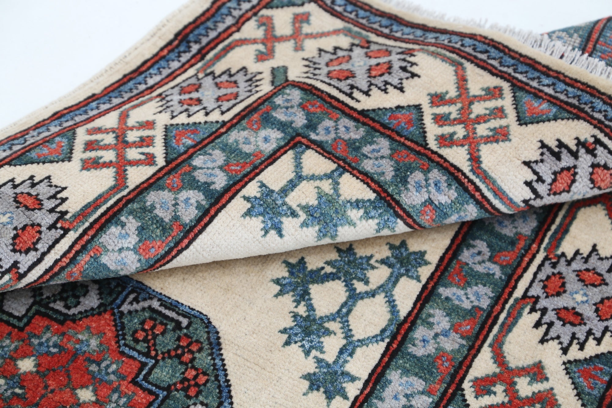 This artisan-crafted Afghan wool rug features a striking geometric tribal pattern, renowned for its cultural heritage and timeless appeal. Expertly hand-knotted by skilled weavers, it offers superior durability, making it perfect for high-traffic areas. Its intricate design and premium wool blend traditional craftsmanship with modern elegance, adding warmth and character to any space.