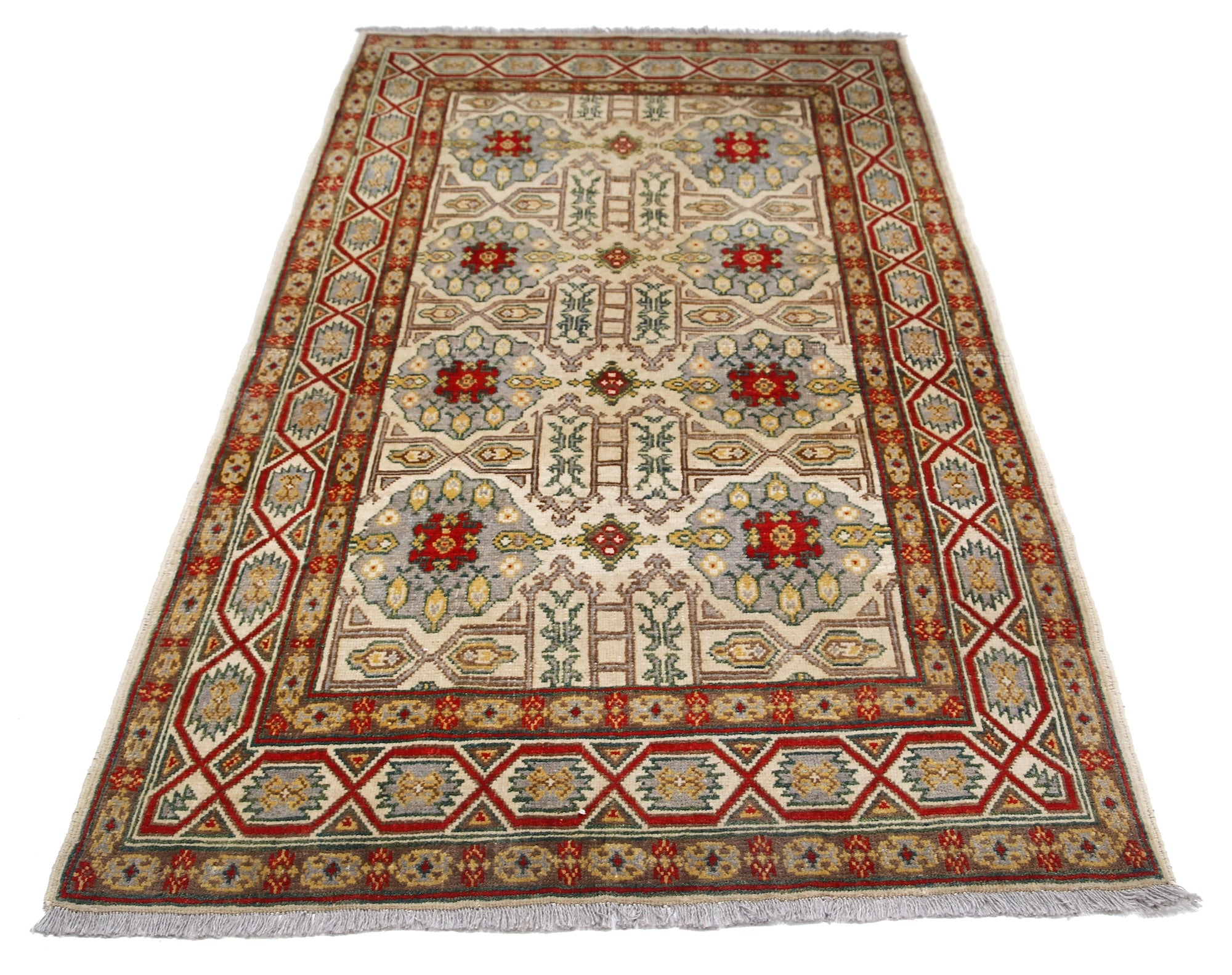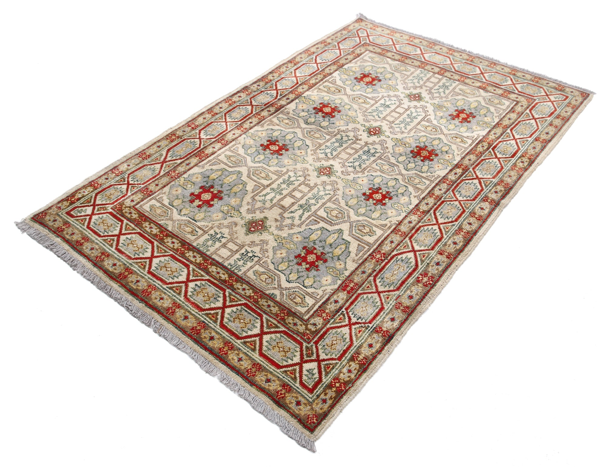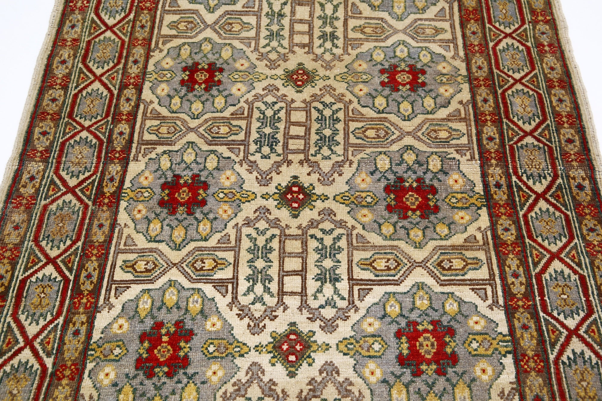 This artisan-crafted Afghan wool rug features a striking geometric tribal pattern, renowned for its cultural heritage and timeless appeal. Expertly hand-knotted by skilled weavers, it offers superior durability, making it perfect for high-traffic areas. Its intricate design and premium wool blend traditional craftsmanship with modern elegance, adding warmth and character to any space.