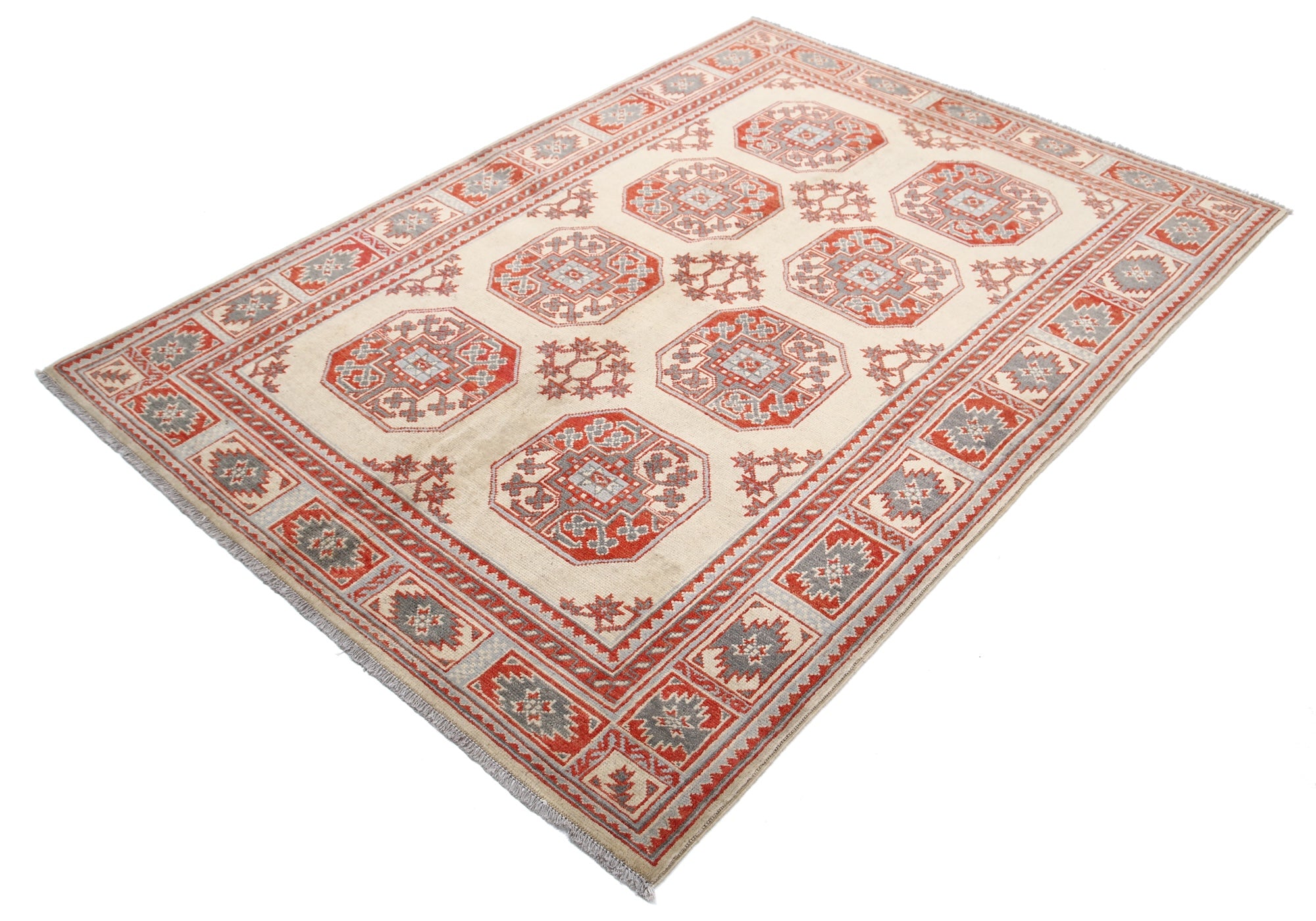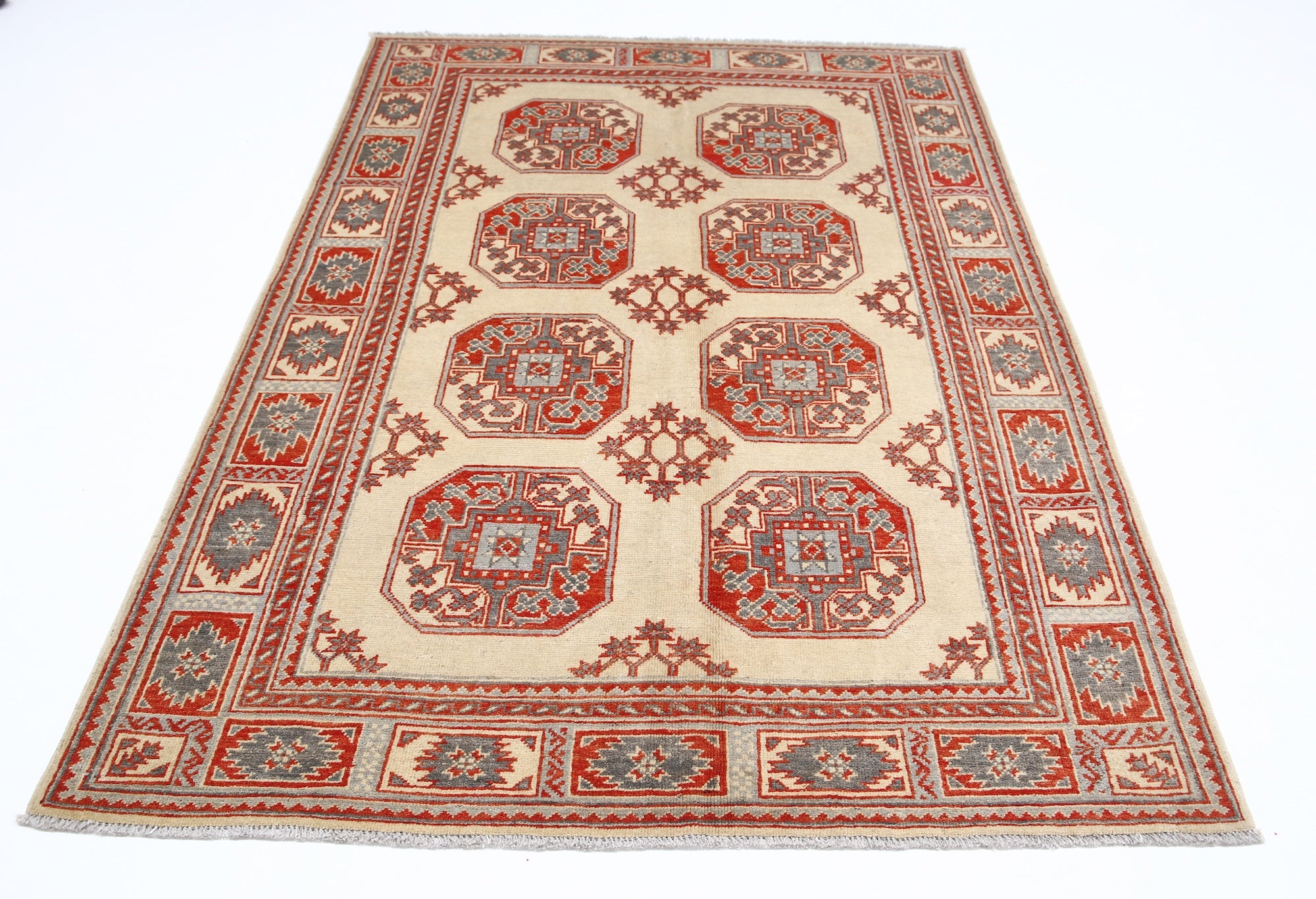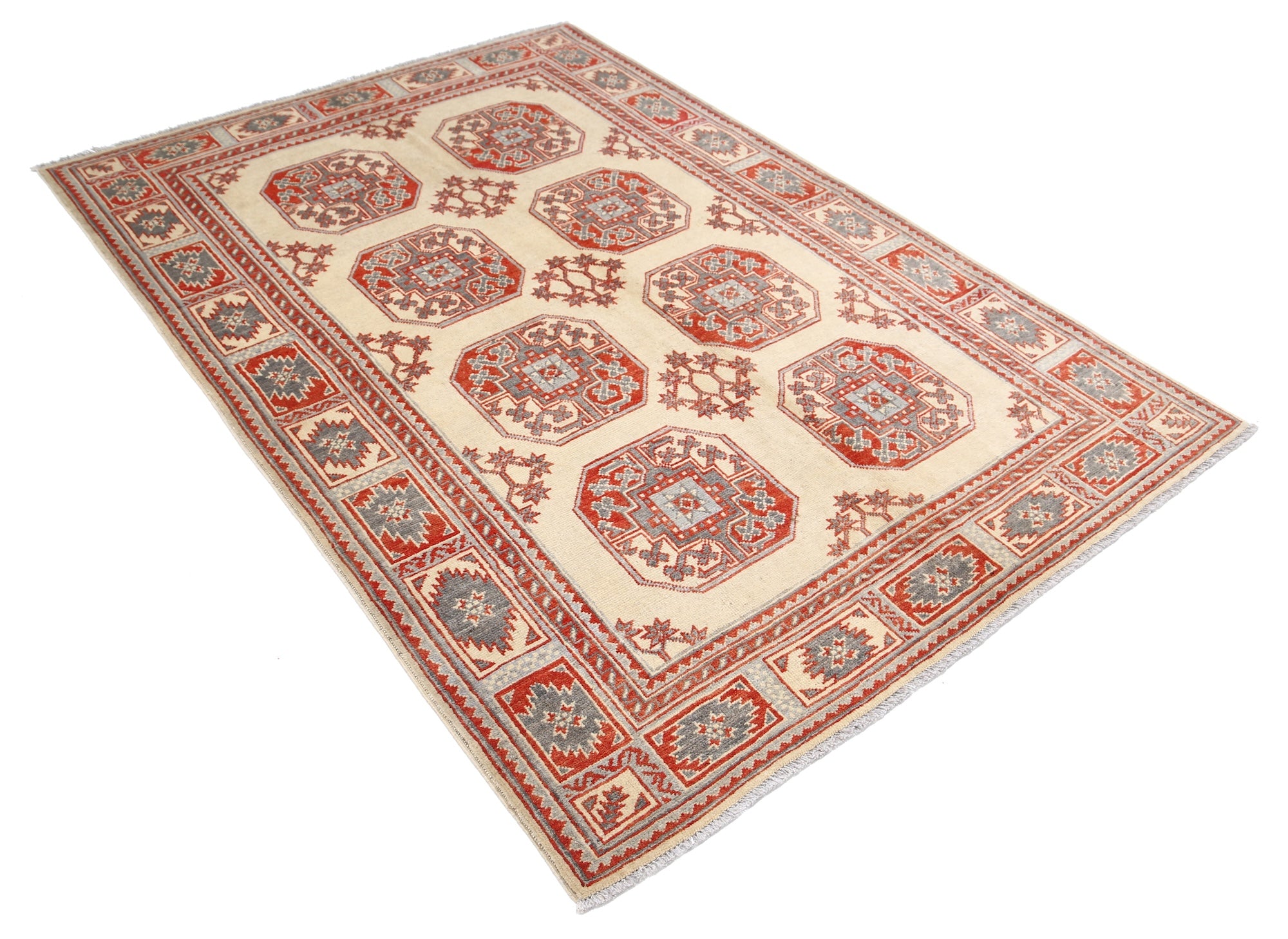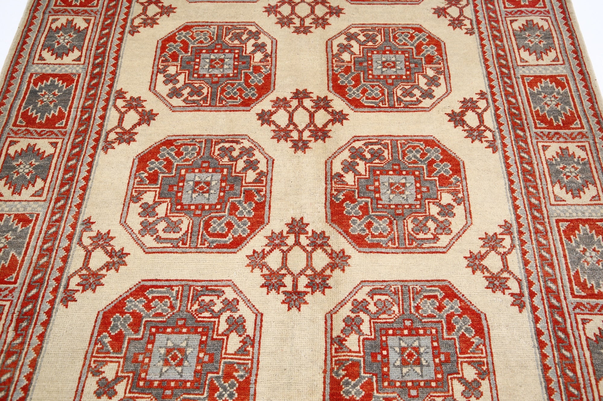 This artisan-crafted Afghan wool rug features a striking geometric tribal pattern, renowned for its cultural heritage and timeless appeal. Expertly hand-knotted by skilled weavers, it offers superior durability, making it perfect for high-traffic areas. Its intricate design and premium wool blend traditional craftsmanship with modern elegance, adding warmth and character to any space.