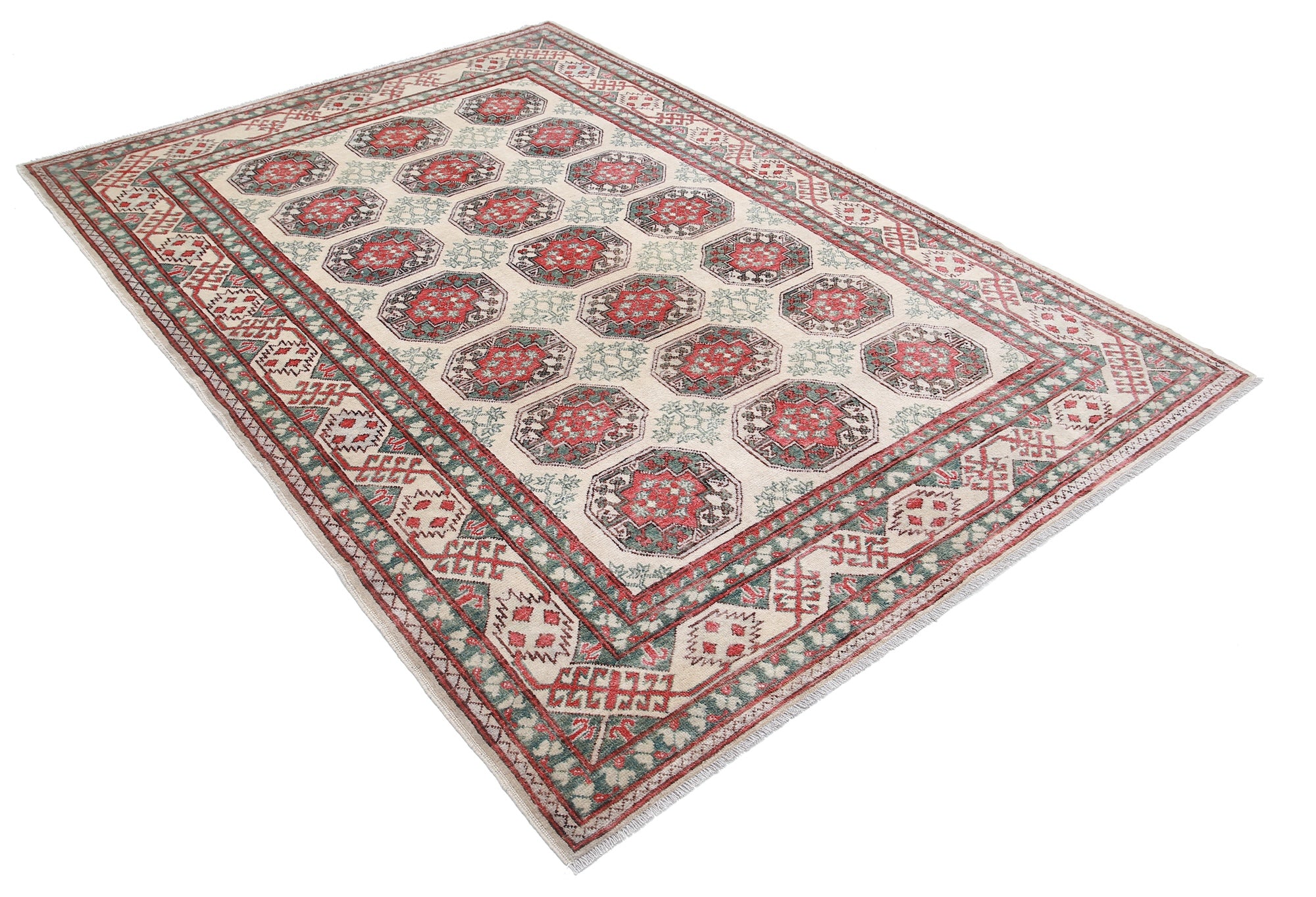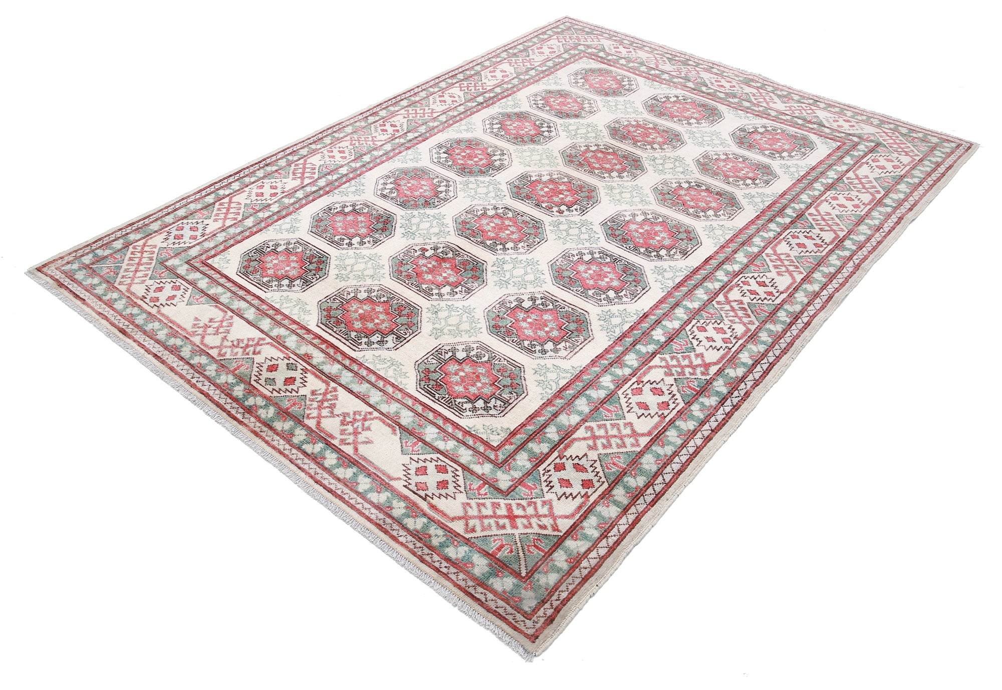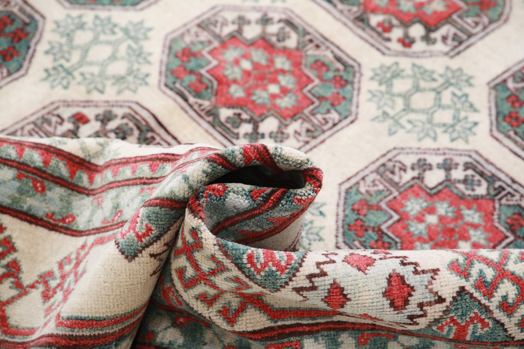 This artisan-crafted Afghan wool rug features a striking geometric tribal pattern, renowned for its cultural heritage and timeless appeal. Expertly hand-knotted by skilled weavers, it offers superior durability, making it perfect for high-traffic areas. Its intricate design and premium wool blend traditional craftsmanship with modern elegance, adding warmth and character to any space.