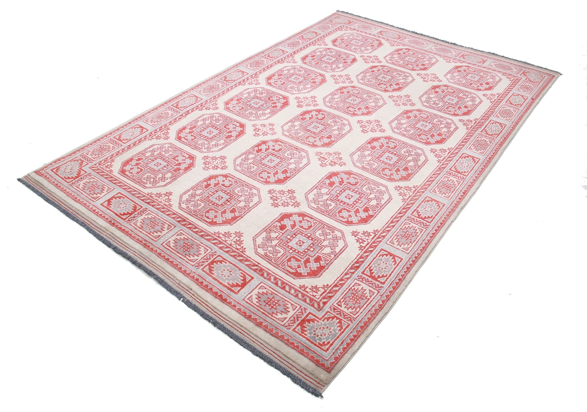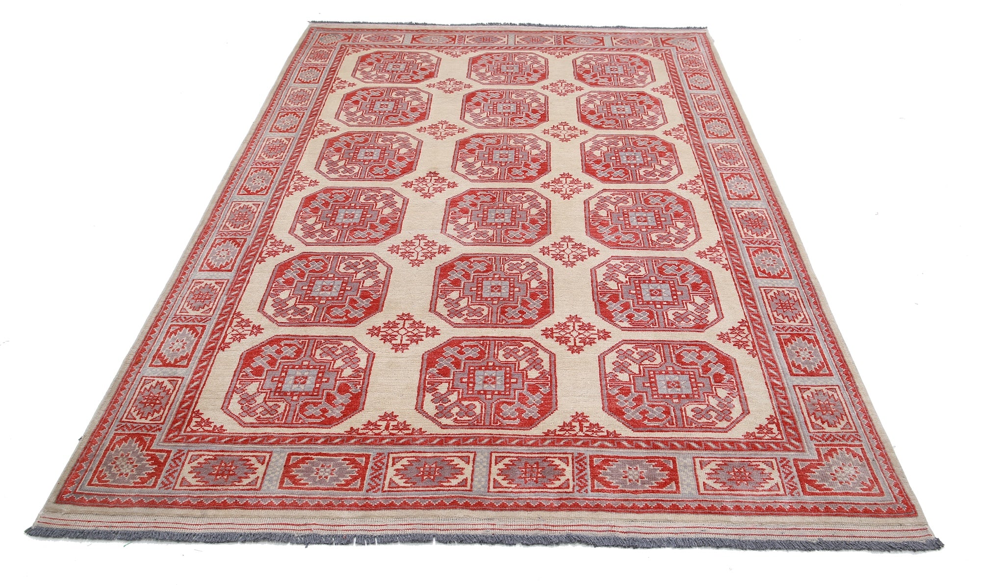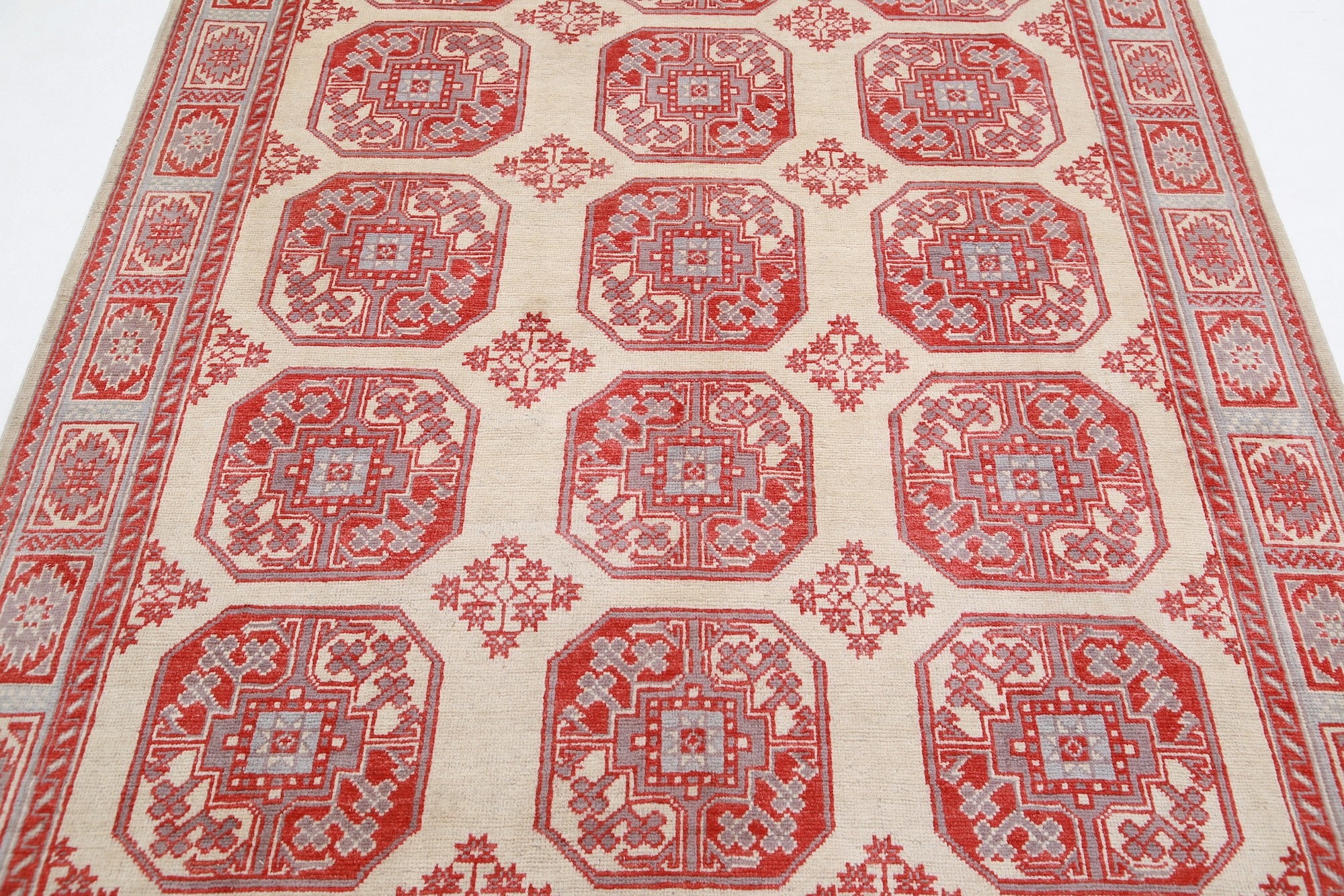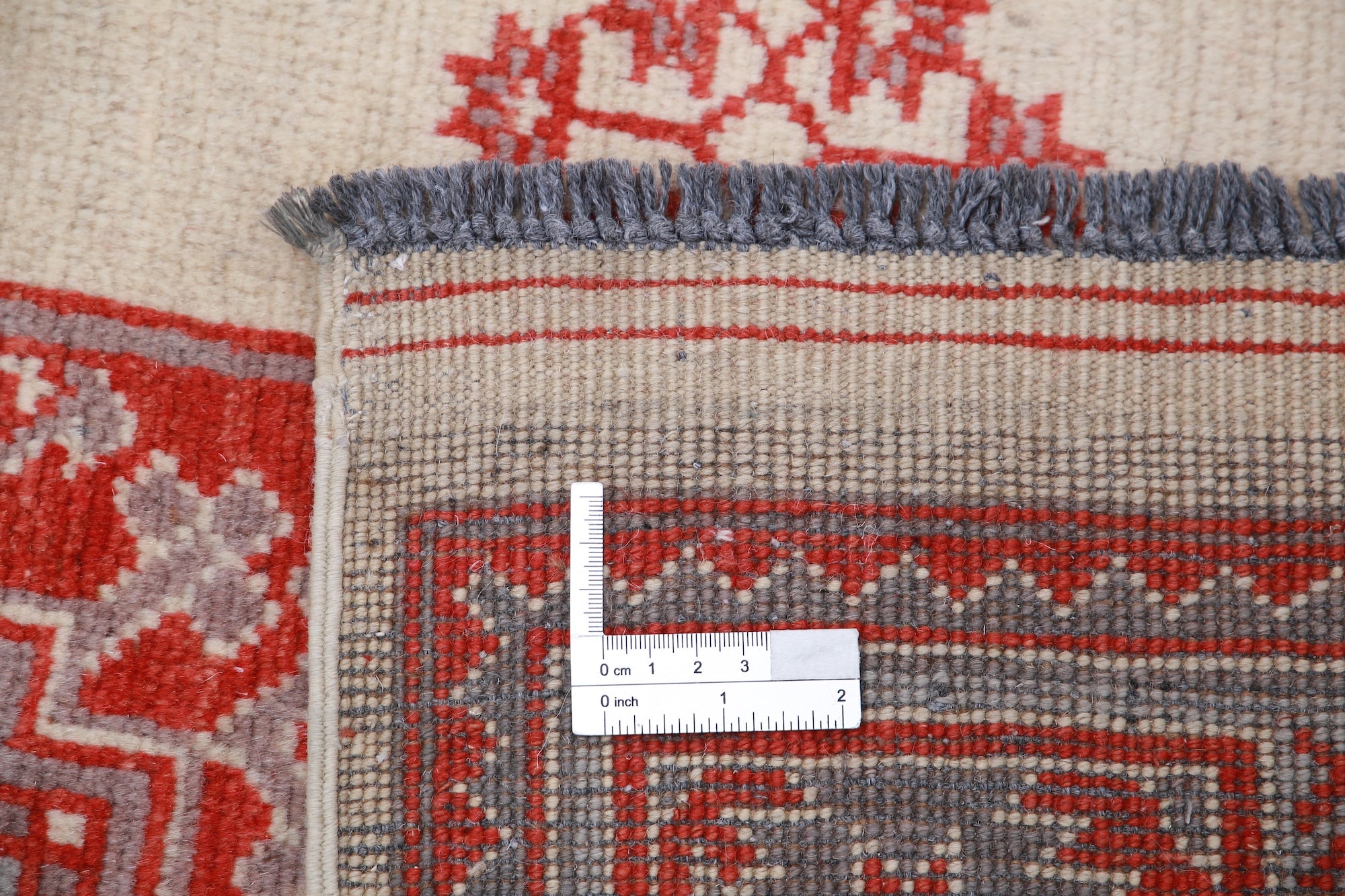 This artisan-crafted Afghan wool rug features a striking geometric tribal pattern, renowned for its cultural heritage and timeless appeal. Expertly hand-knotted by skilled weavers, it offers superior durability, making it perfect for high-traffic areas. Its intricate design and premium wool blend traditional craftsmanship with modern elegance, adding warmth and character to any space.