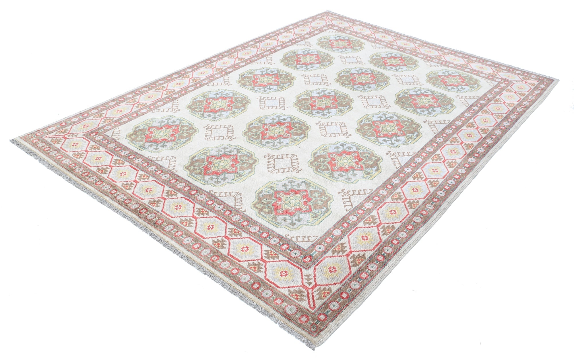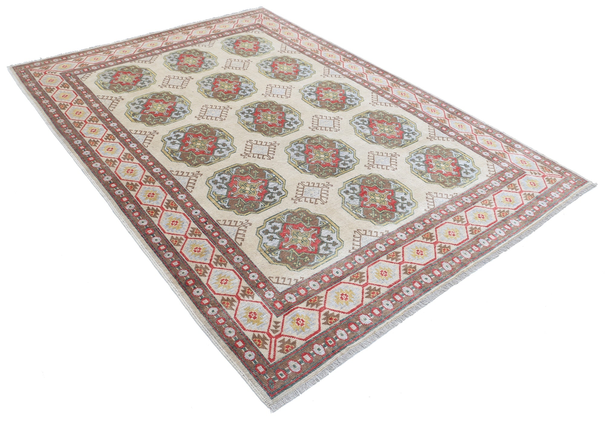 This artisan-crafted Afghan wool rug features a striking geometric tribal pattern, renowned for its cultural heritage and timeless appeal. Expertly hand-knotted by skilled weavers, it offers superior durability, making it perfect for high-traffic areas. Its intricate design and premium wool blend traditional craftsmanship with modern elegance, adding warmth and character to any space.