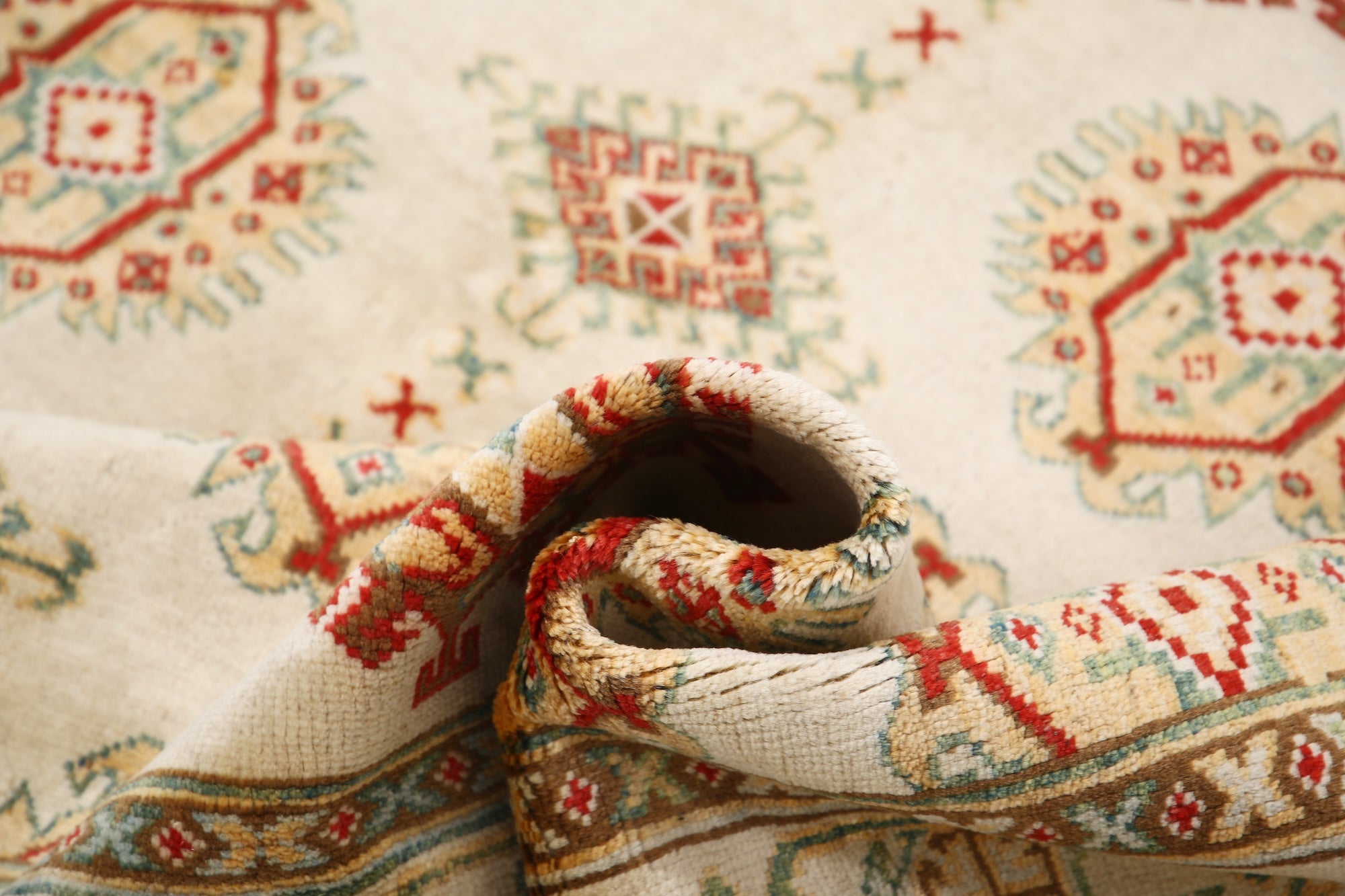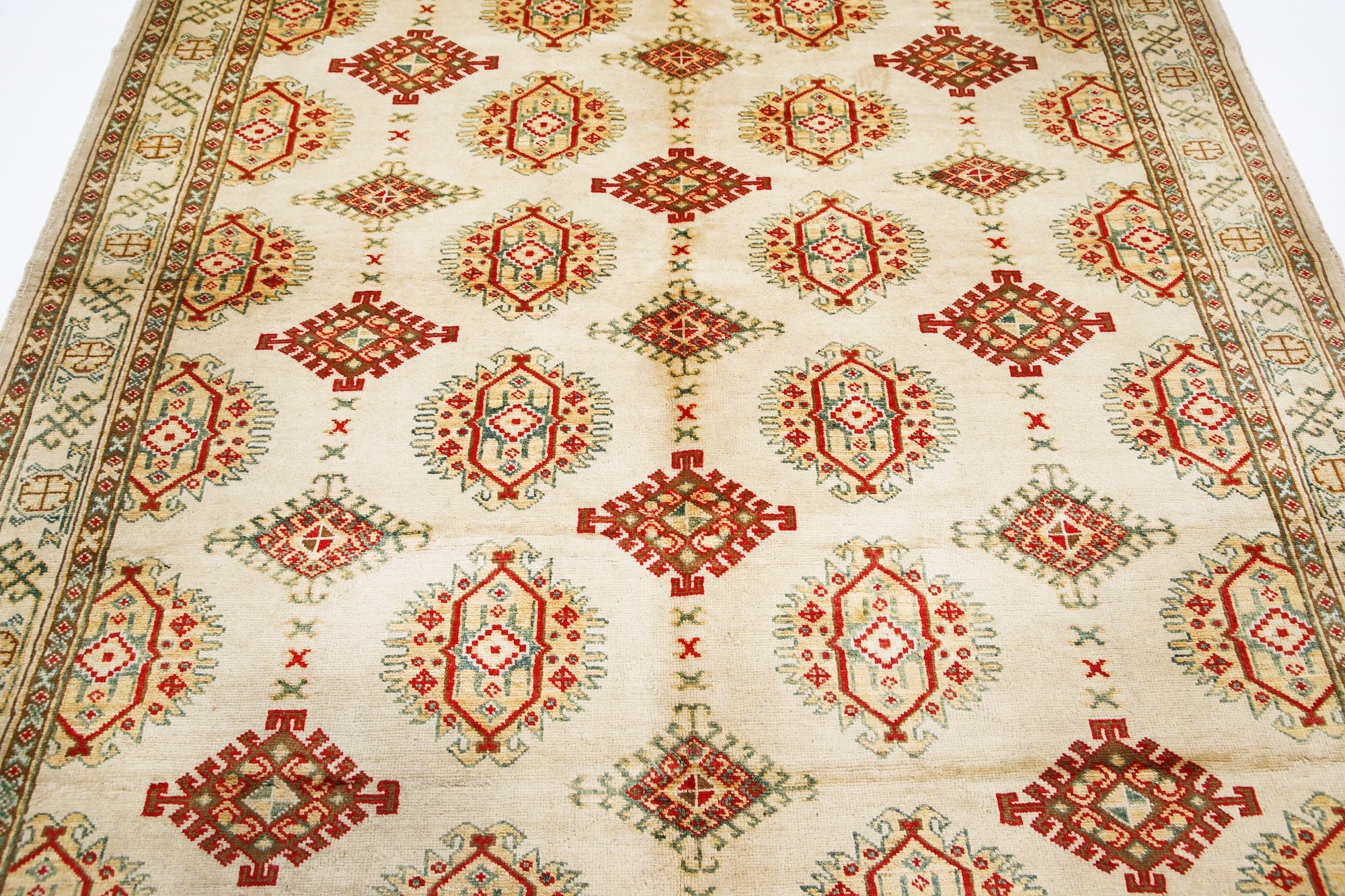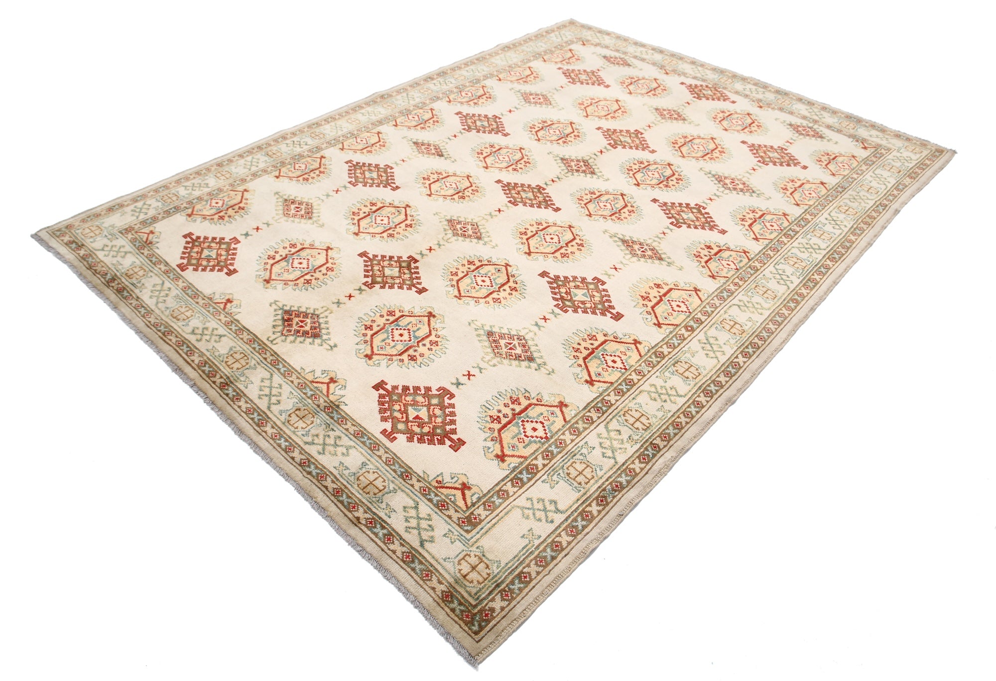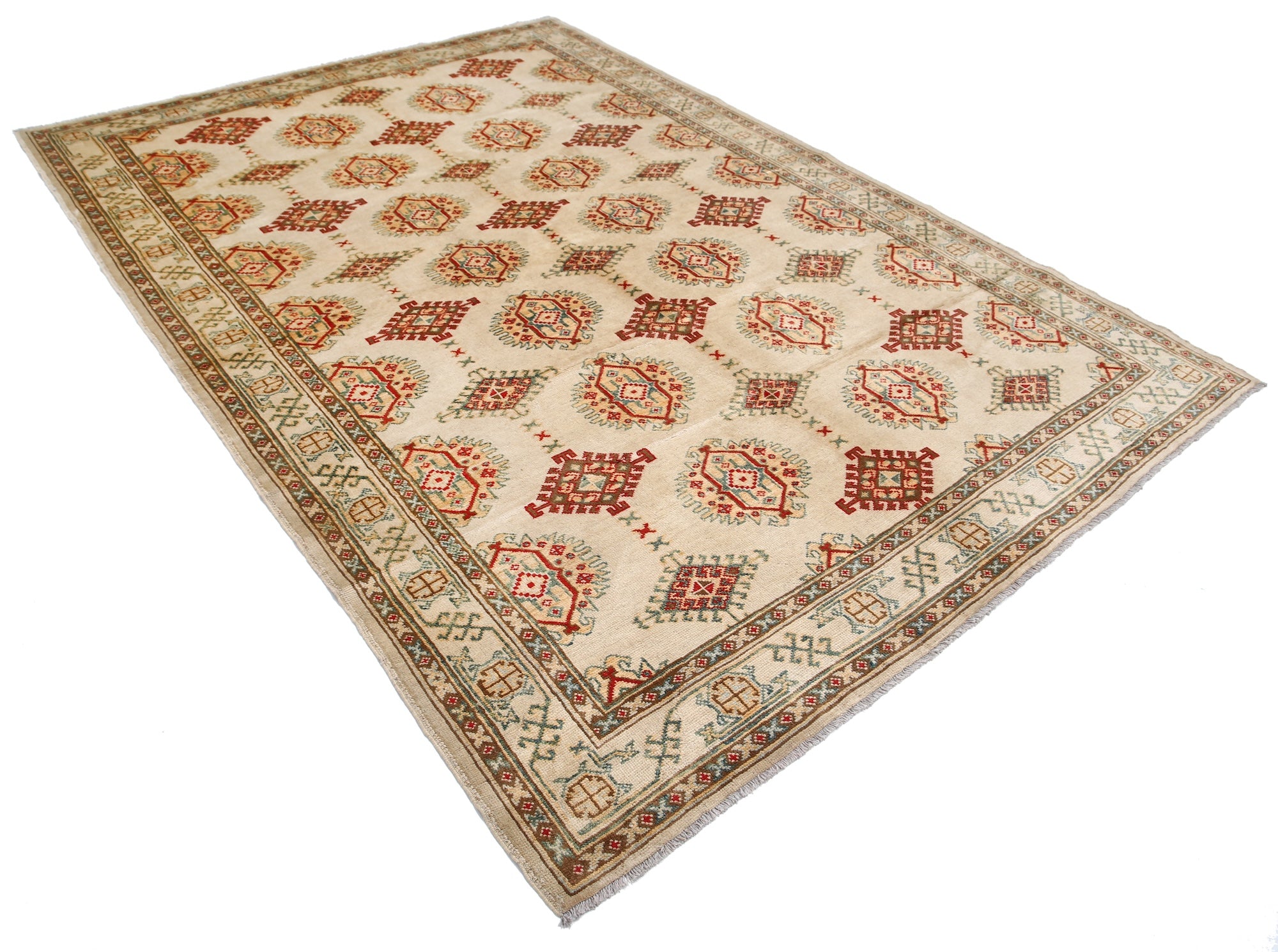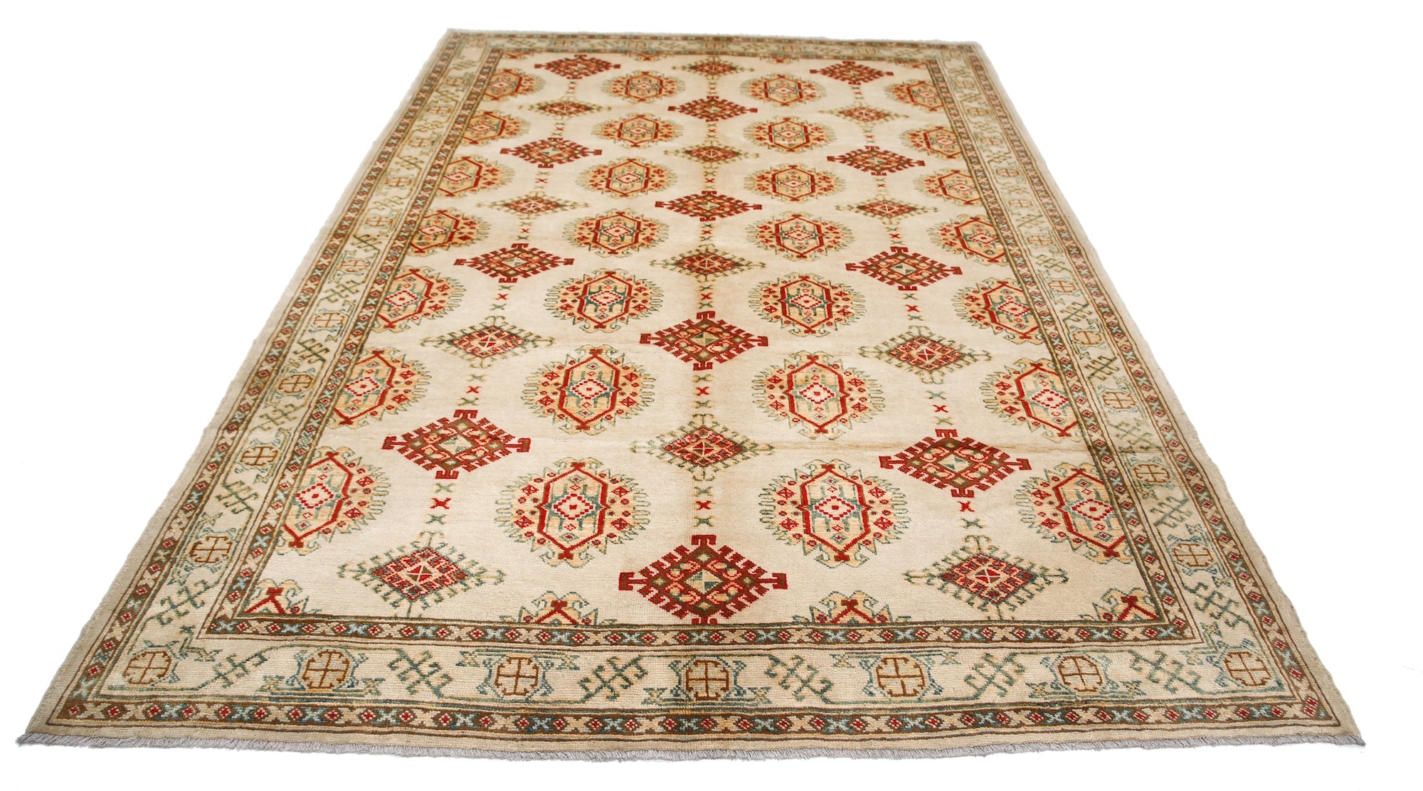 This artisan-crafted Afghan wool rug features a striking geometric tribal pattern, renowned for its cultural heritage and timeless appeal. Expertly hand-knotted by skilled weavers, it offers superior durability, making it perfect for high-traffic areas. Its intricate design and premium wool blend traditional craftsmanship with modern elegance, adding warmth and character to any space.
